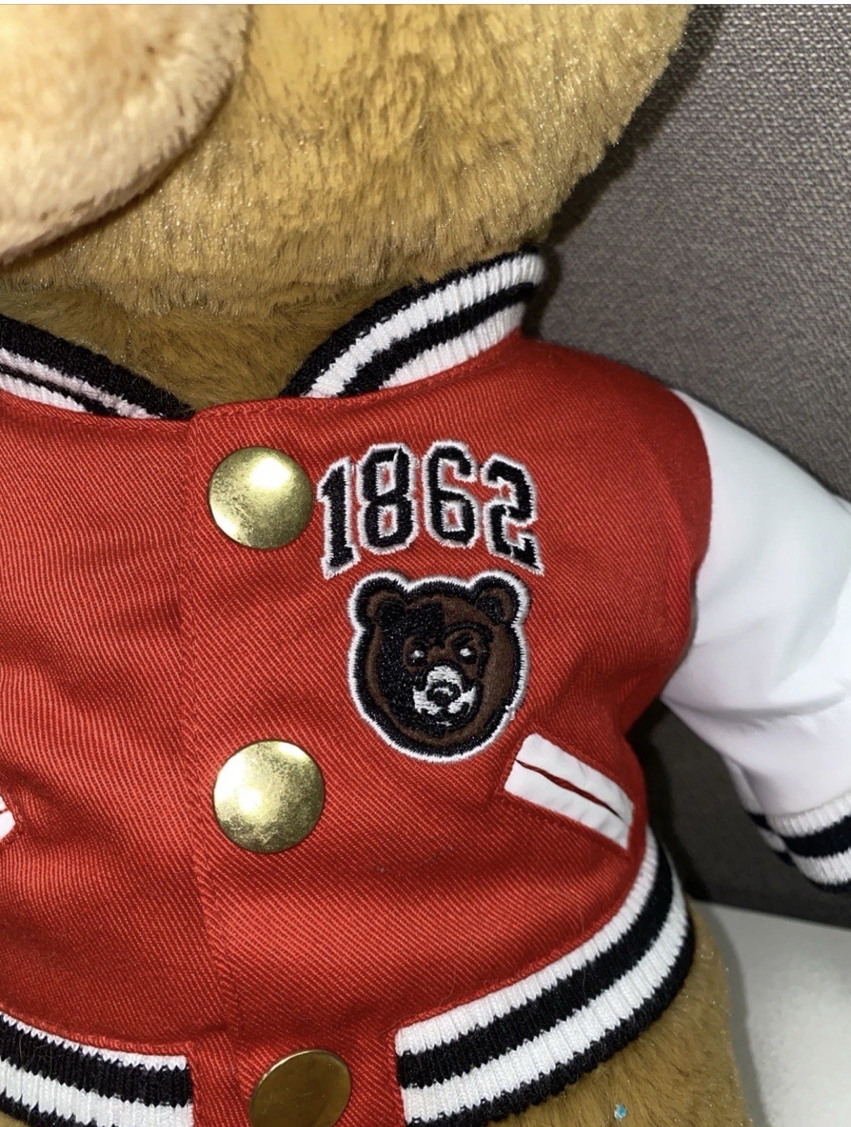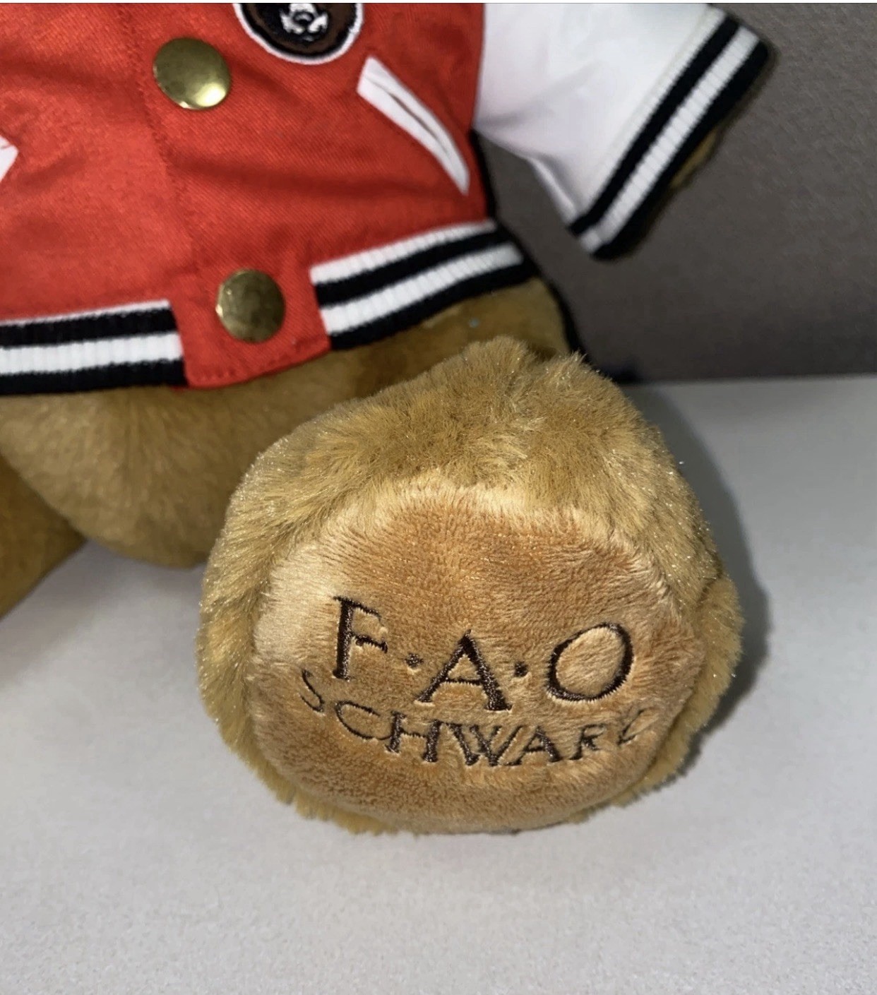 как выглядит Teddy Bear FAO Schwarz Authentic Brown Plush Toy Letterman Jacket Cuddly 13 . фото