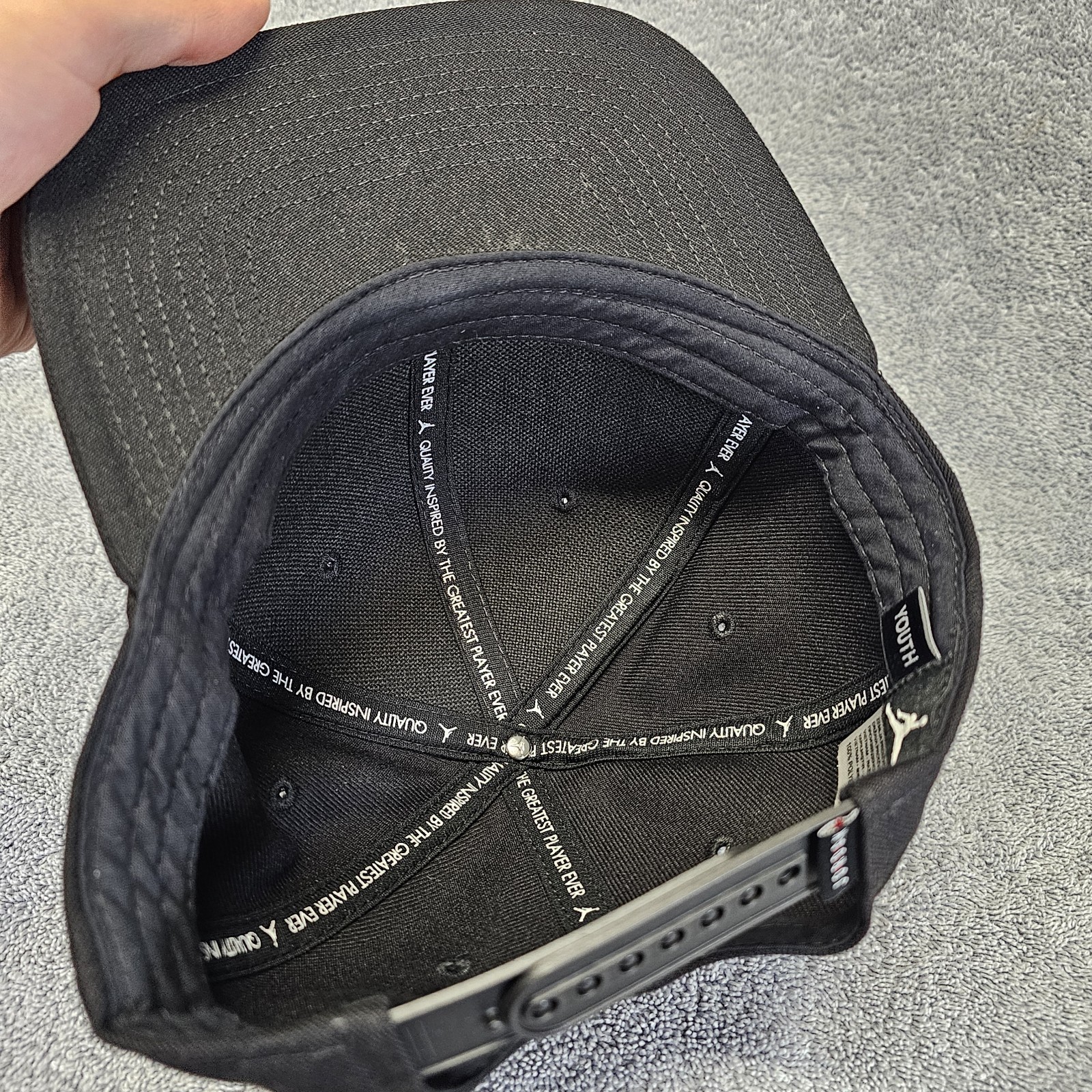 как выглядит YOUTH Air Jordan Hat Jumpman Cap Snapback Black Red Spell Out Logo OSFM Nike фото