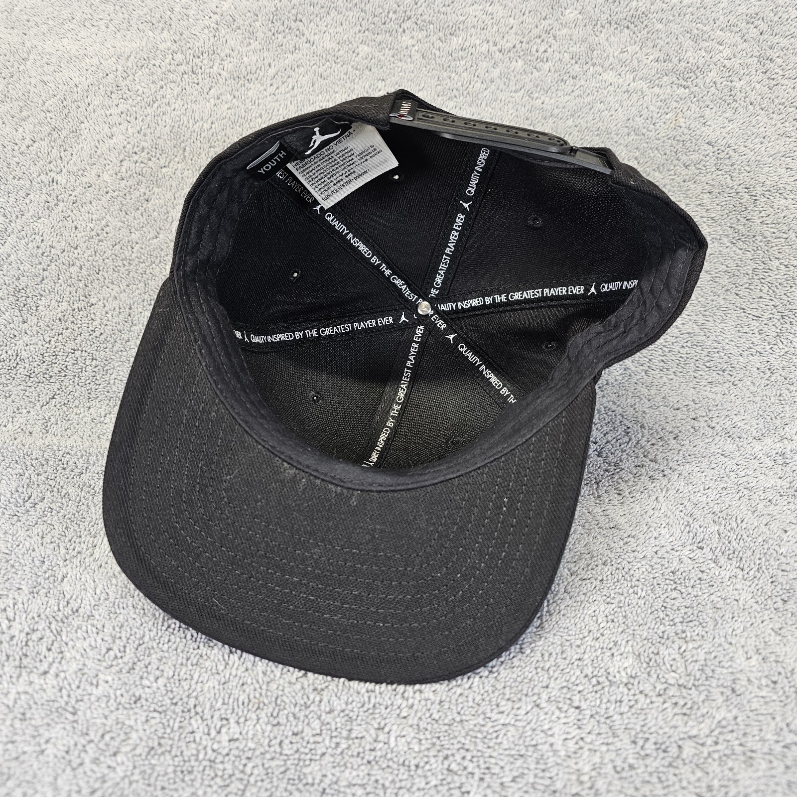 YOUTH Air Jordan Hat Jumpman Cap Snapback Black Red Spell Out Logo OSFM Nike