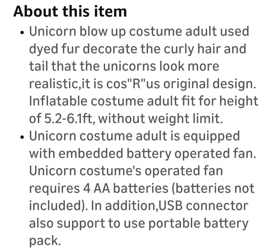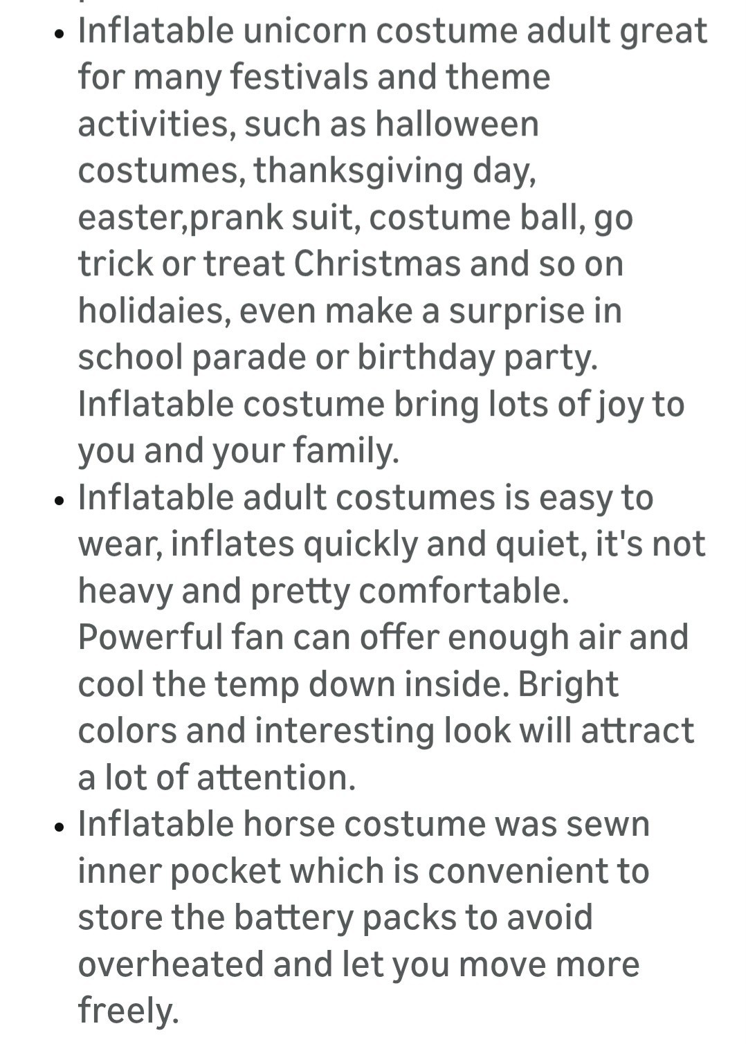 как выглядит Inflatable Unicorn Costume w/ Fan Adult Halloween Birthday White Elephant Gift фото