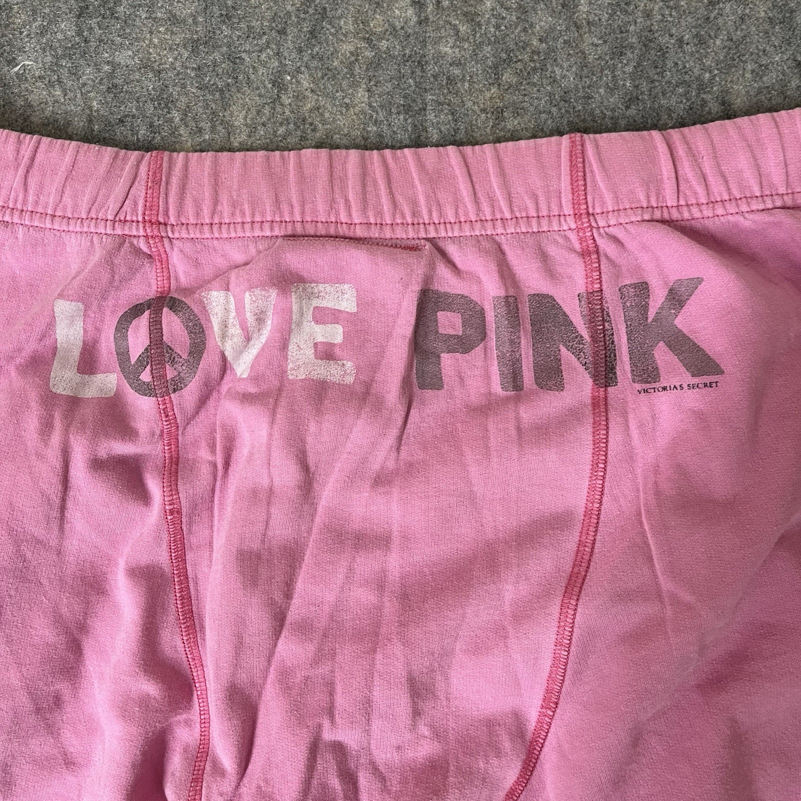 как выглядит Y2K Victoria Secret Pink Sweatpants Size Medium Peace Spell Out SMALL FLAWS фото