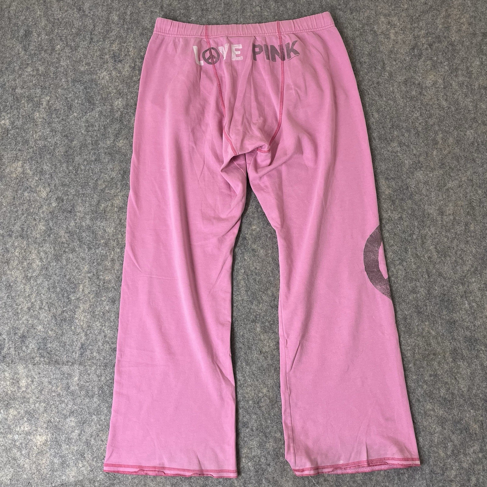Y2K Victoria Secret Pink Sweatpants Size Medium Peace Spell Out SMALL FLAWS