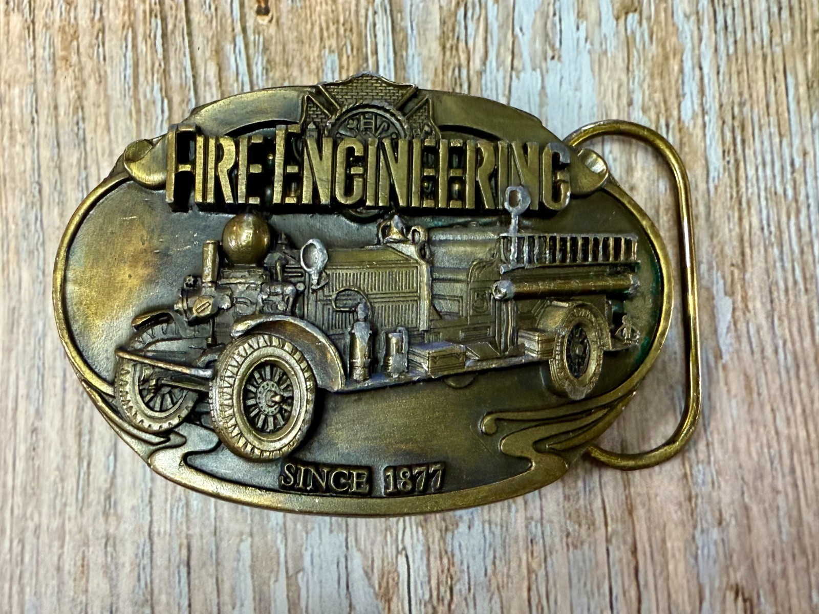 как выглядит Fire Engineering Since 1877 Fire Fighter Seagrave Firetruck 1991 Belt Buckle фото