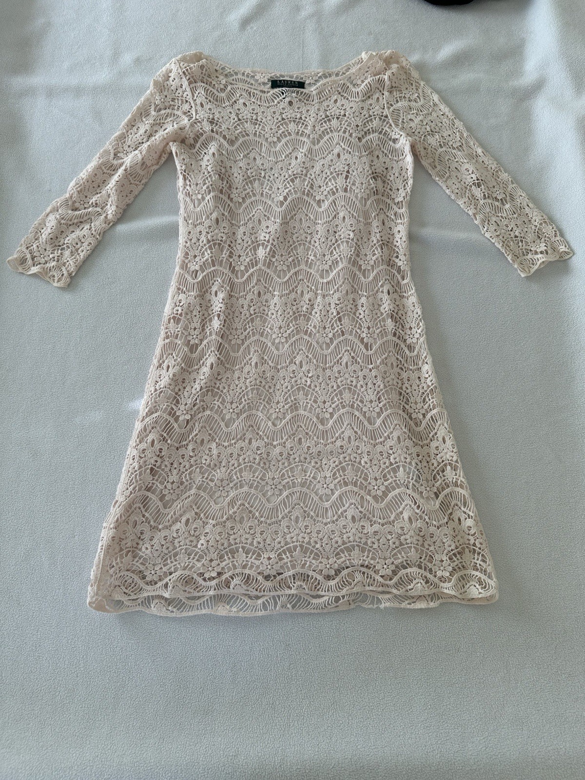 Lauren Ralph Lauren Dress Small Laced Dress With Polyester Sheath Slip Lite Pink
