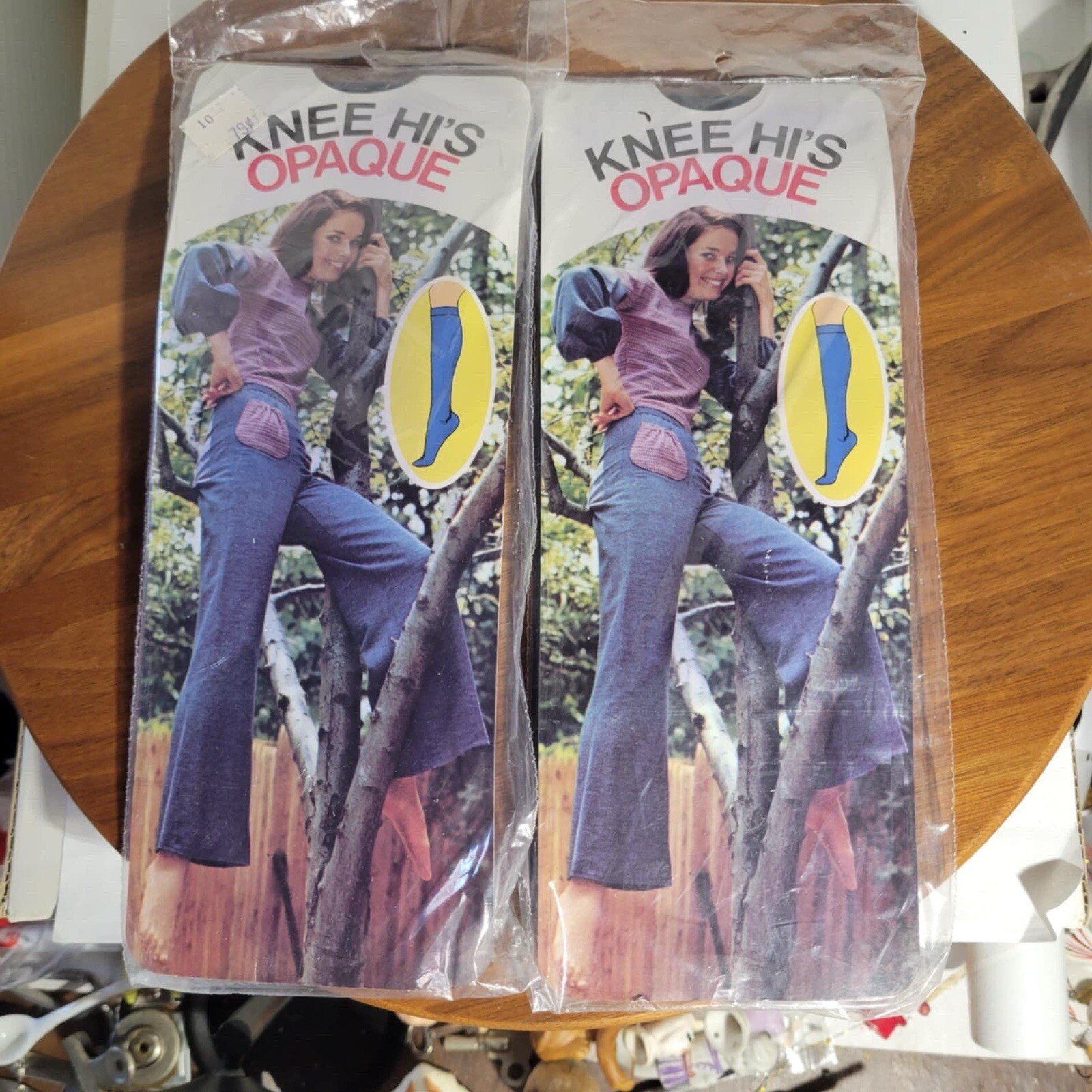 Vintage Opaque KNEE HI'S SUNTAN Nylon Stockings Hose 1970s Qty. 2 Advertising