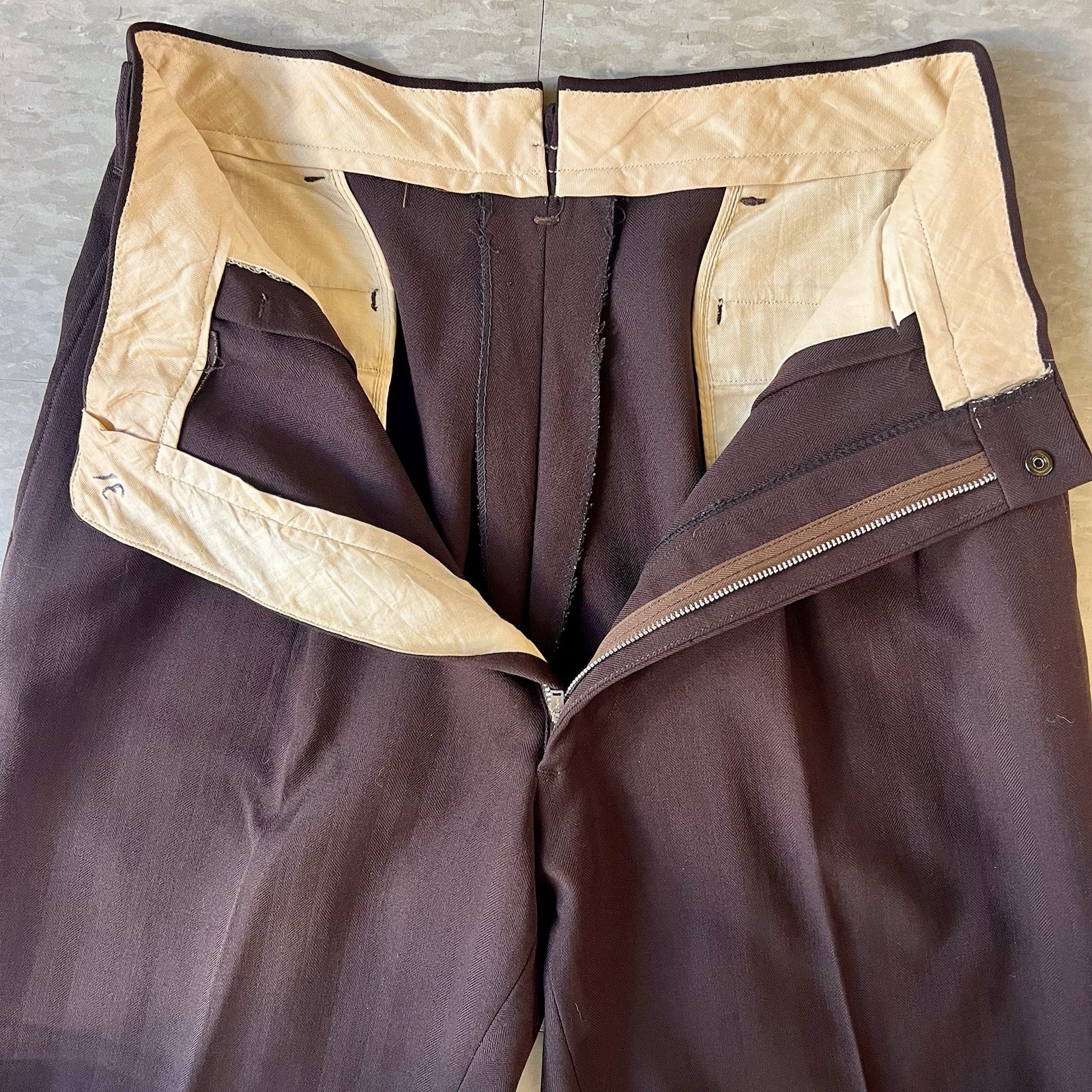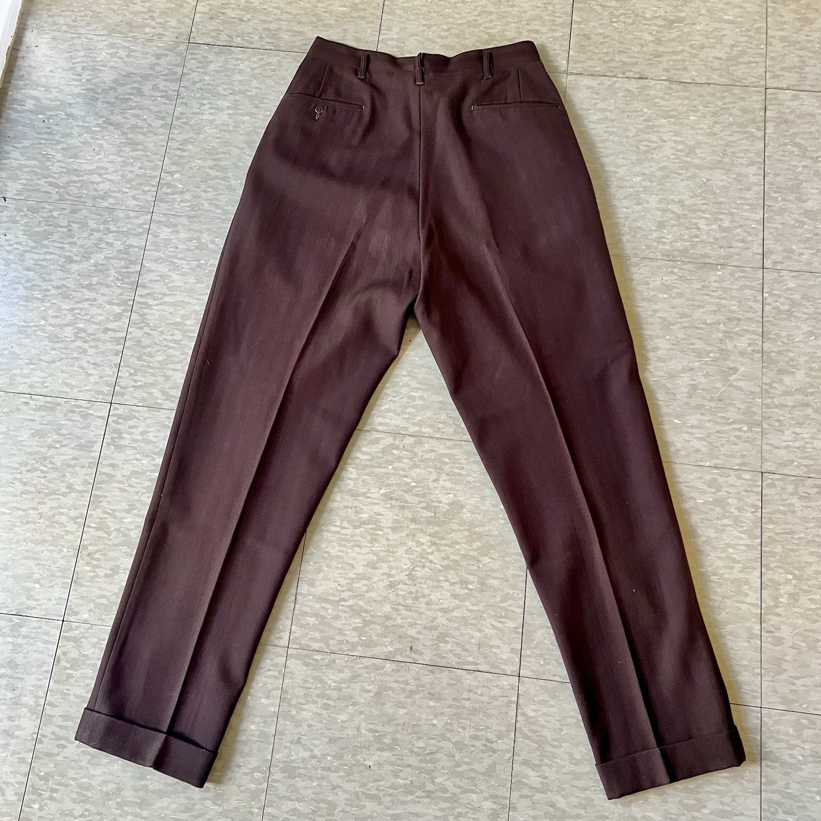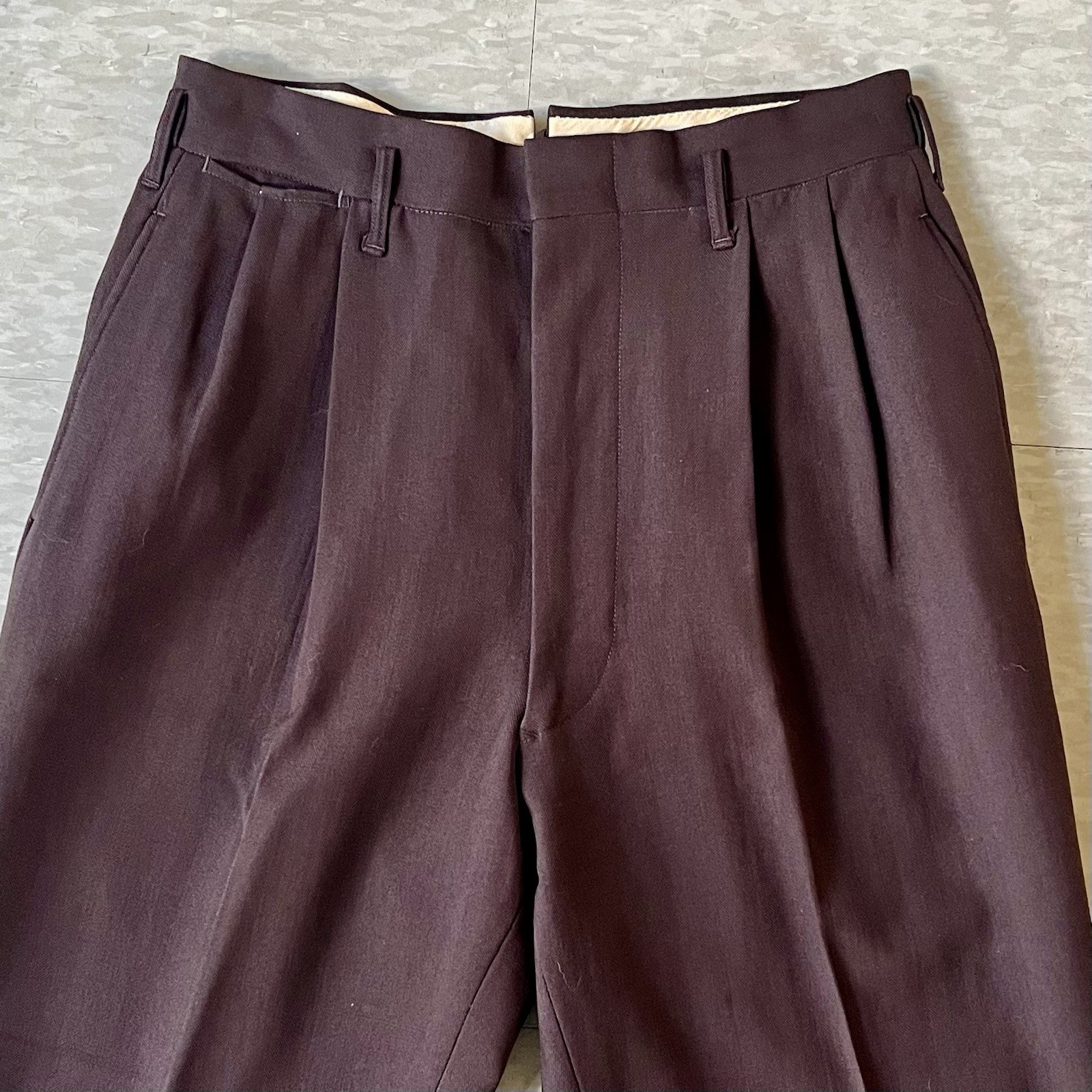 как выглядит 1950s Vintage Brown Gabardine Drop Loop Slacks Pants 30w фото