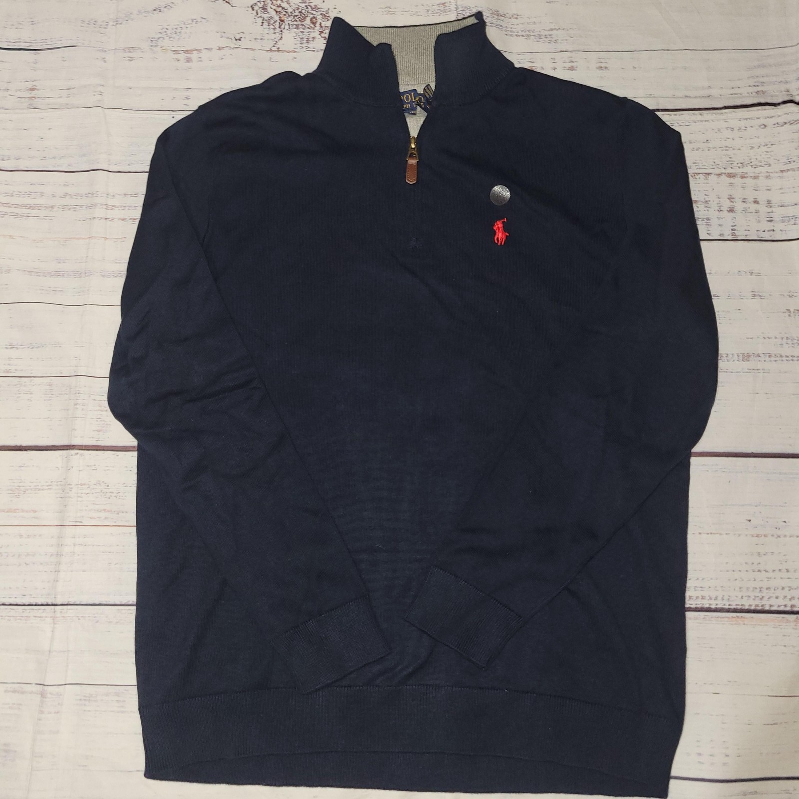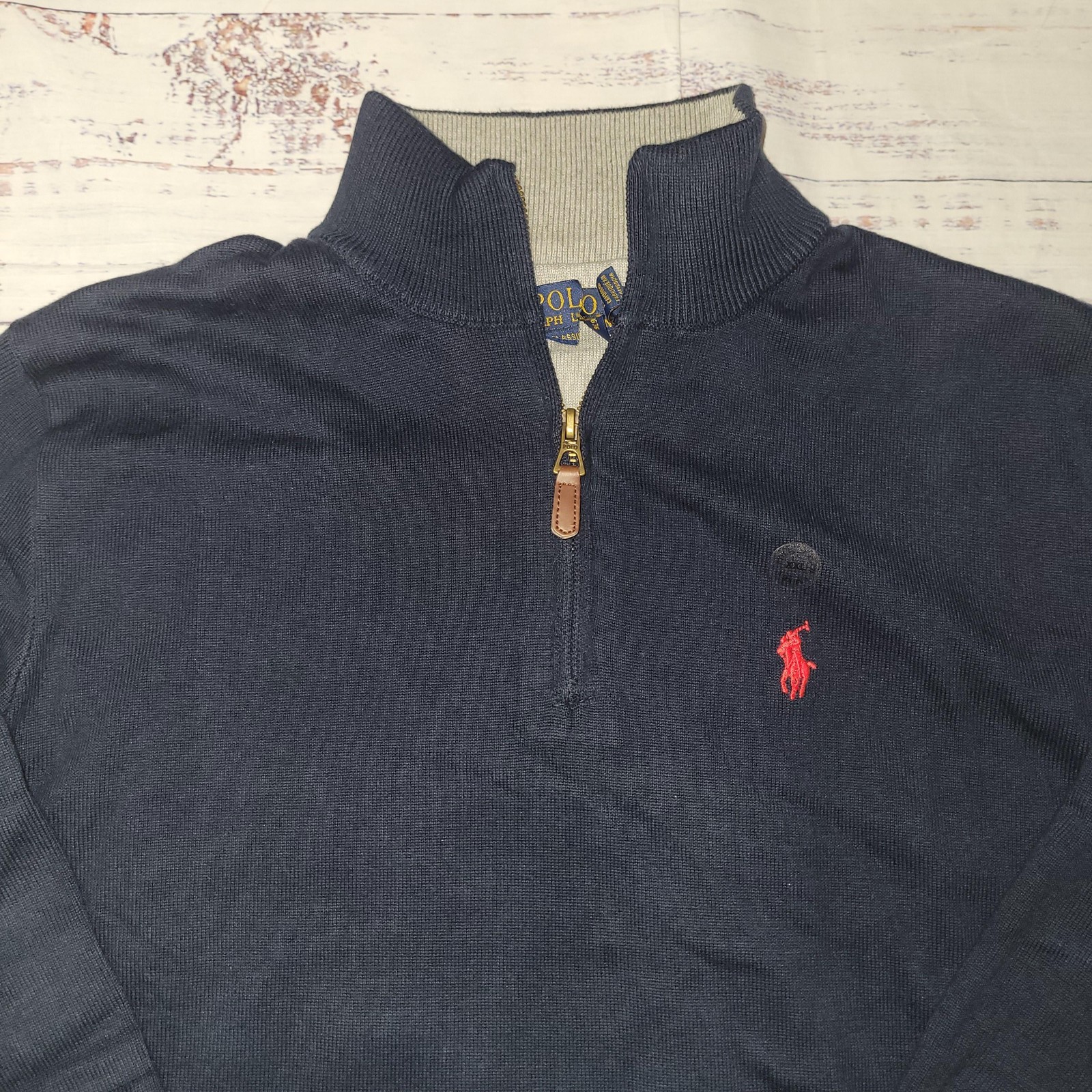как выглядит Polo Ralph Lauren Sweater Mens 2XL Navy Quarter Zip Mock Neck Pony Slim Fit фото