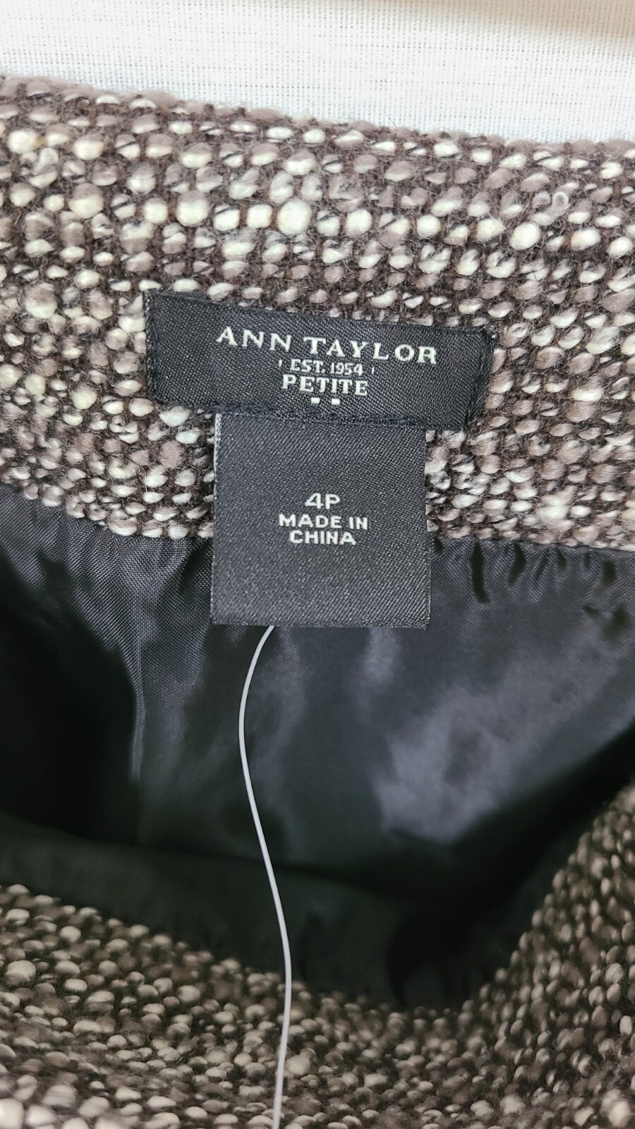 NWT Ann Taylor Petites Wool Blend Tweed Brown/Cream Mini Skirt Sz 4P O4
