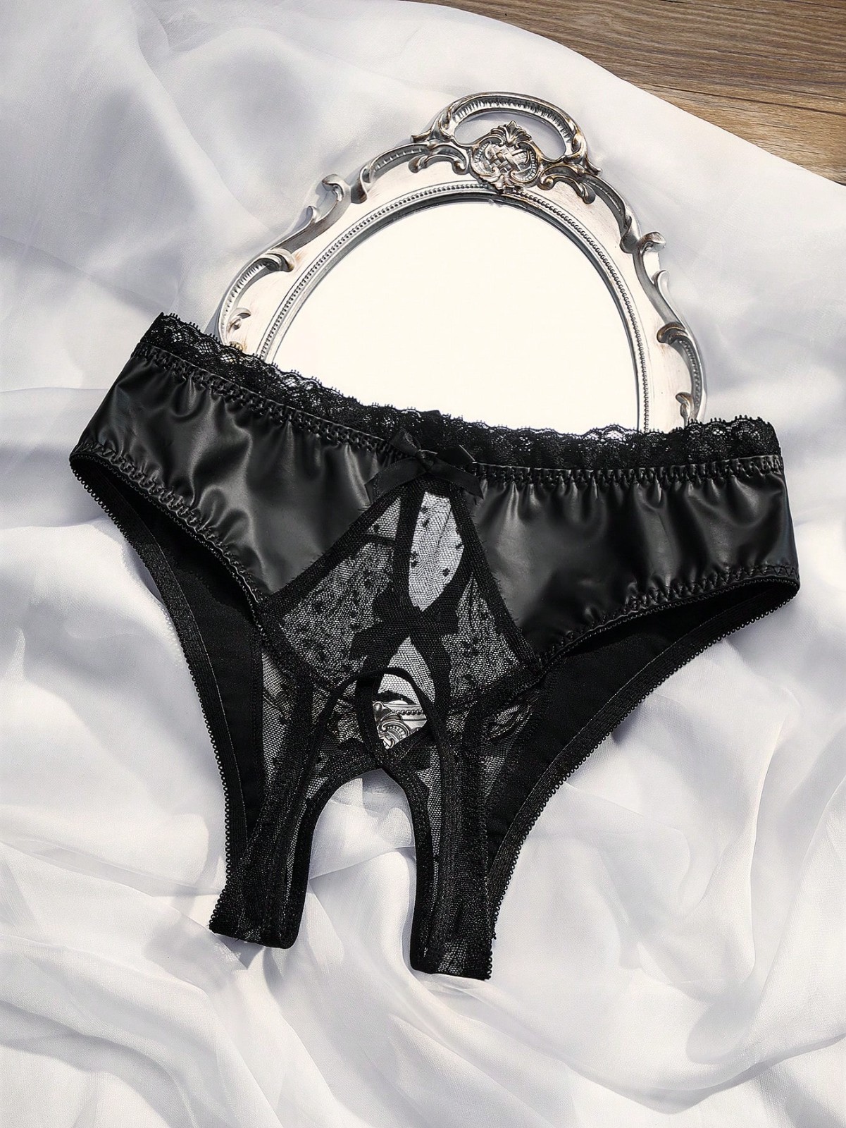 как выглядит L / Black Mesh Bow Panties Open Back Sheer Women Sissy Crossdresser Lingerie фото