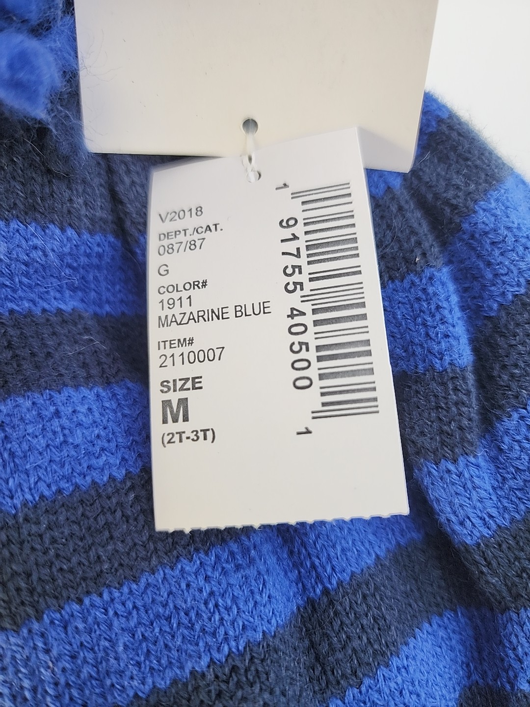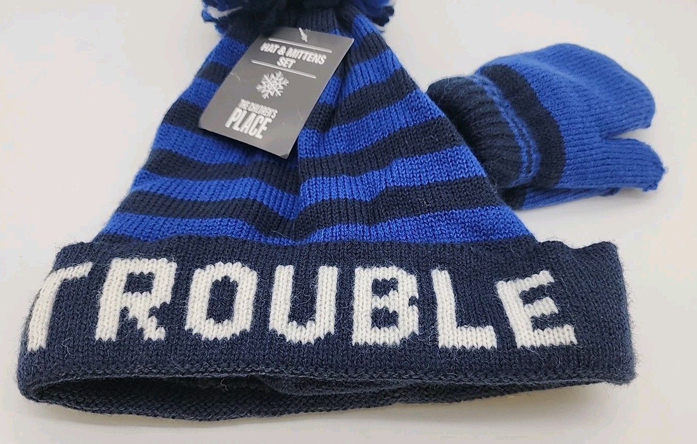 The Children's Place Blue Stripe Knit Pom Pom Beanie Mittens Glove 2T - 3T NWT