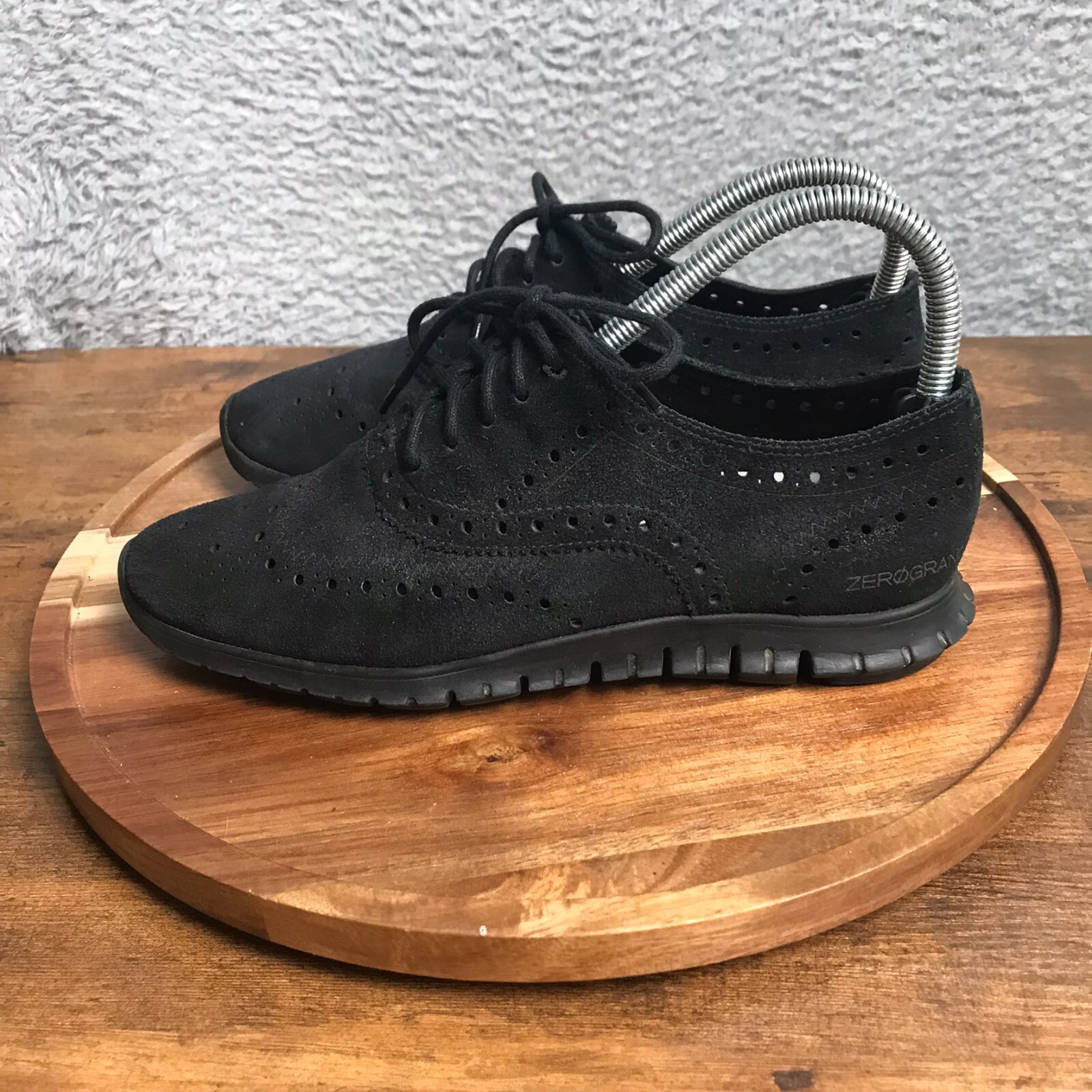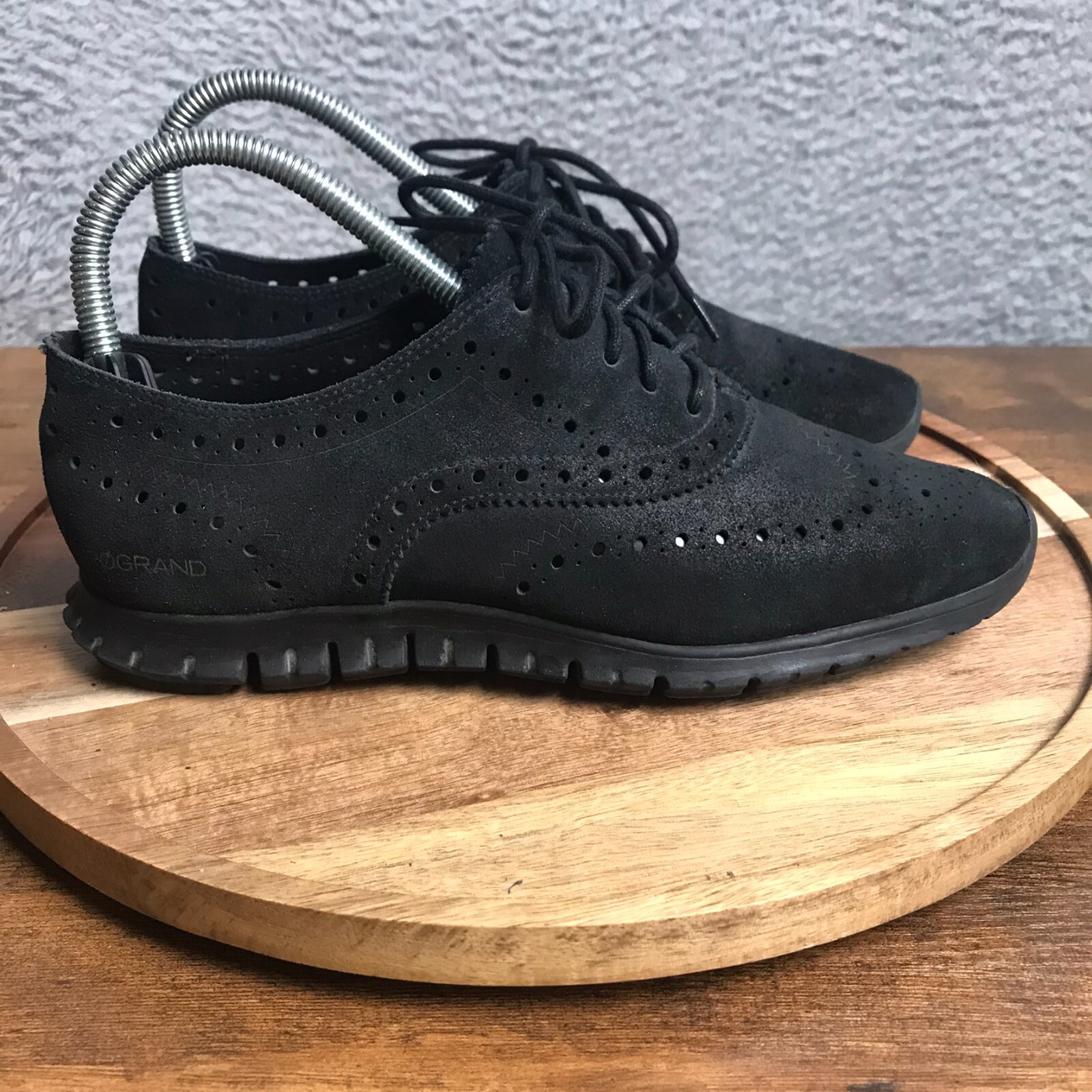 Cole Haan ZeroGrand Wingtip Oxford Womens 7B Black Suede Dress Shoes Sneakers