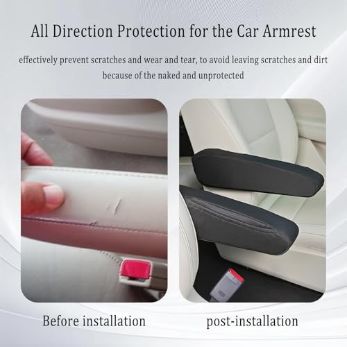 2PCS Arm Rest Cover for Car with Side Pocket,Breathable Cloth Fabric Car Black