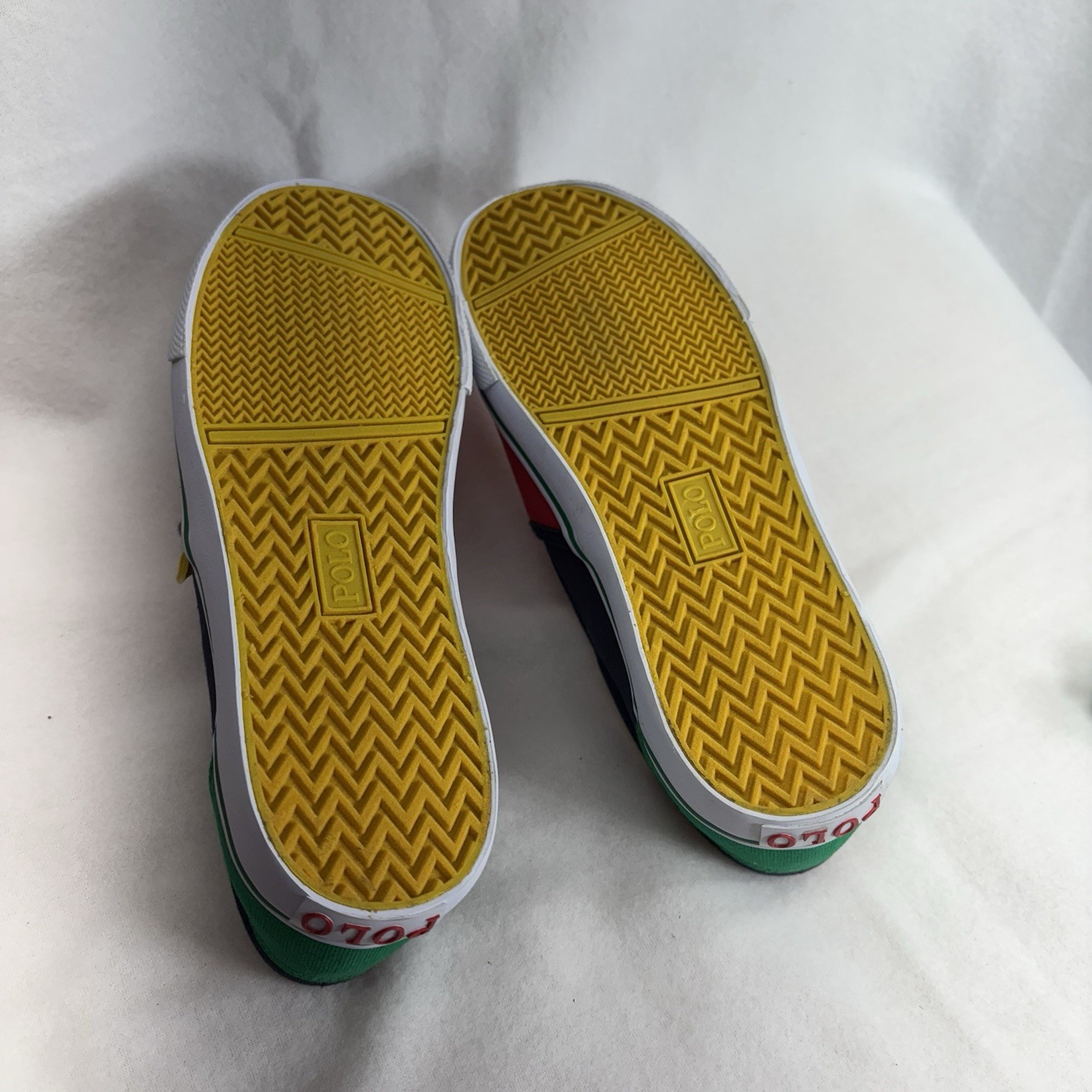 как выглядит Polo Ralph Lauren Landyn Slip On Child P-Wing Patch Canvas Shoes Size 3 NWOT фото