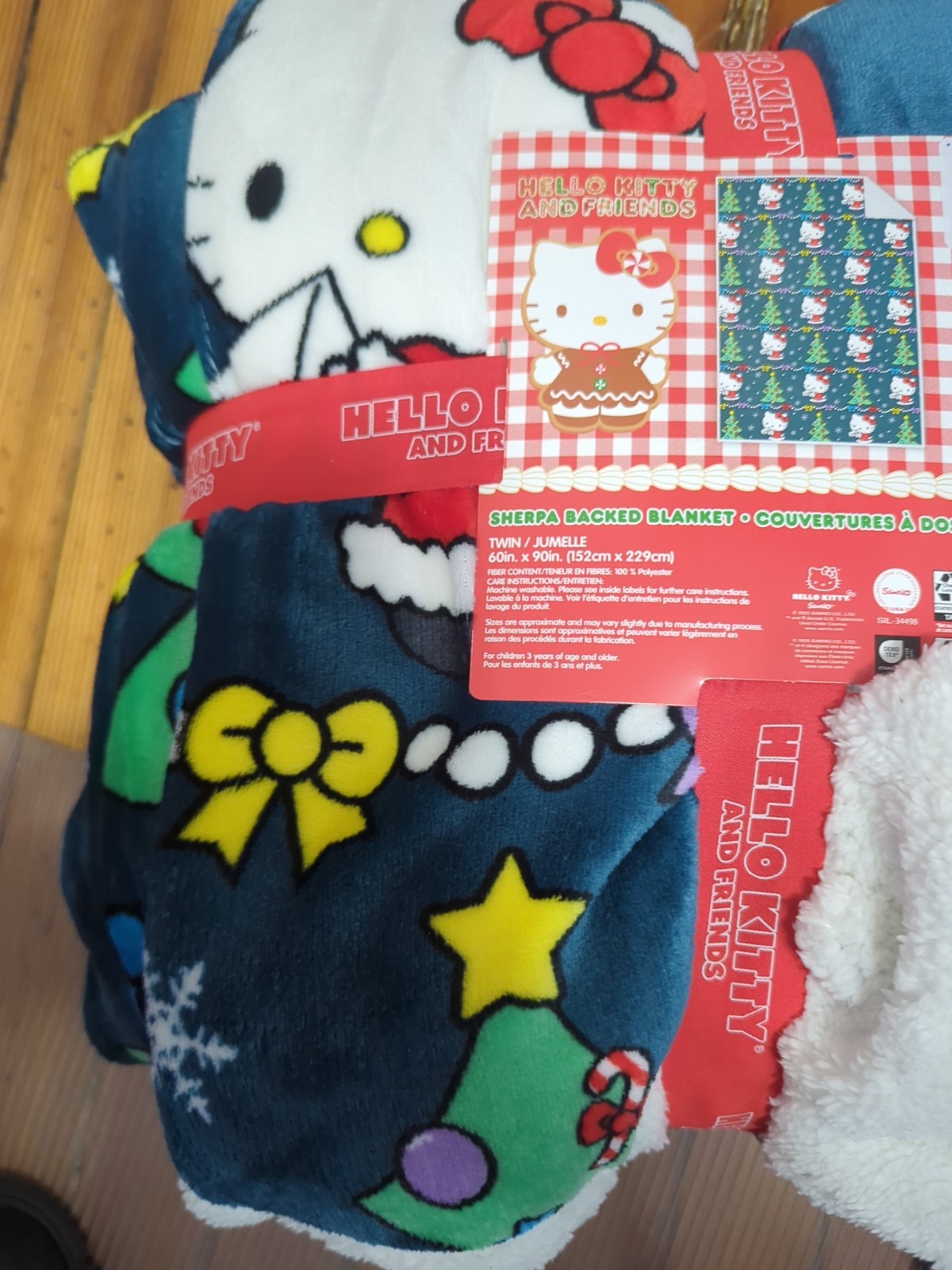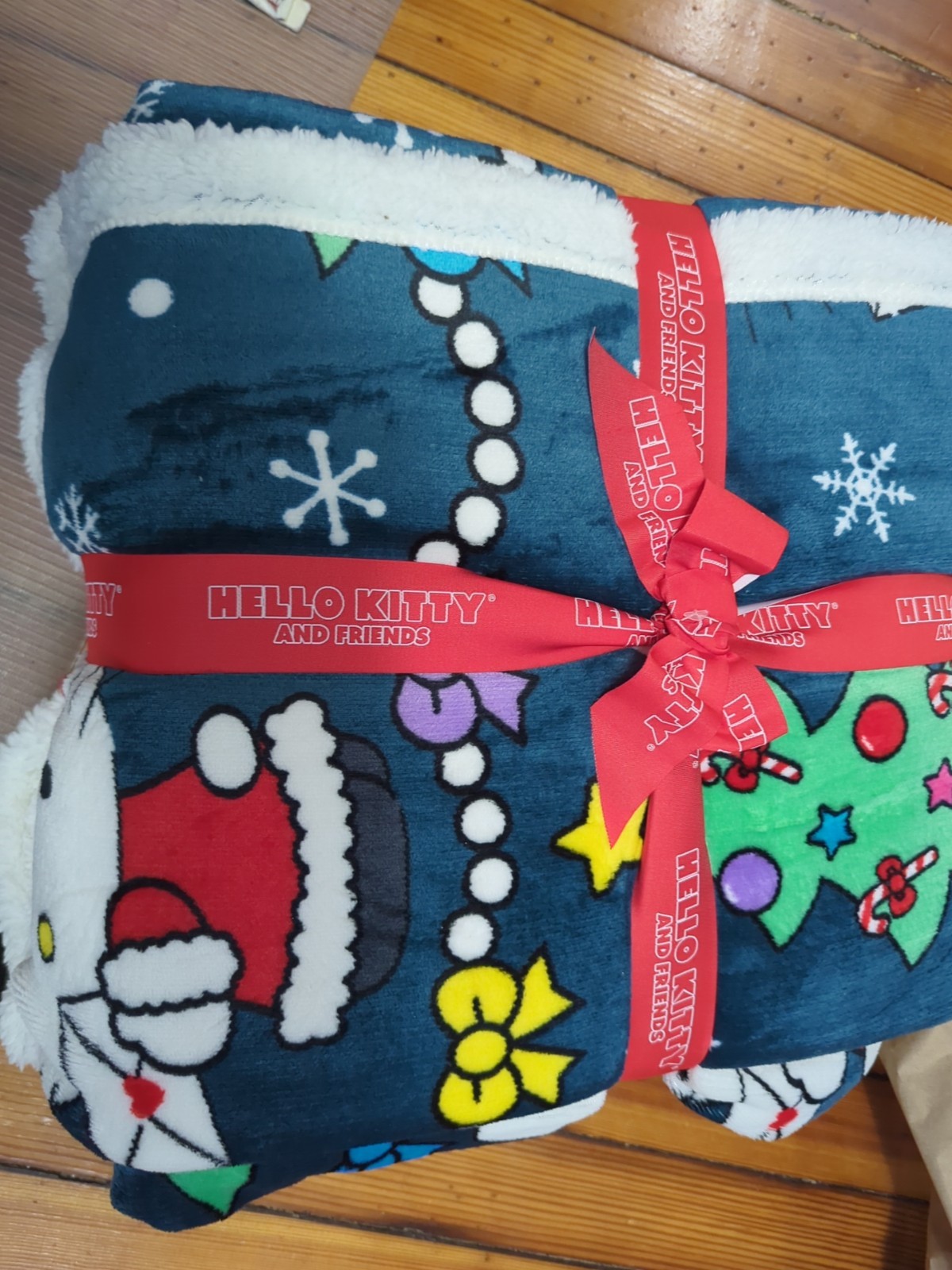 как выглядит Hello Kitty Sherpa Backed Christmas Blanket Twin 60x90 New Plush Throw фото
