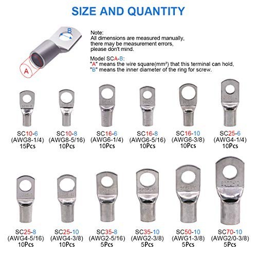 105Pcs Heavy Duty Wire Lugs Battery Cable Connectors - Tinned Copper Eyelets T