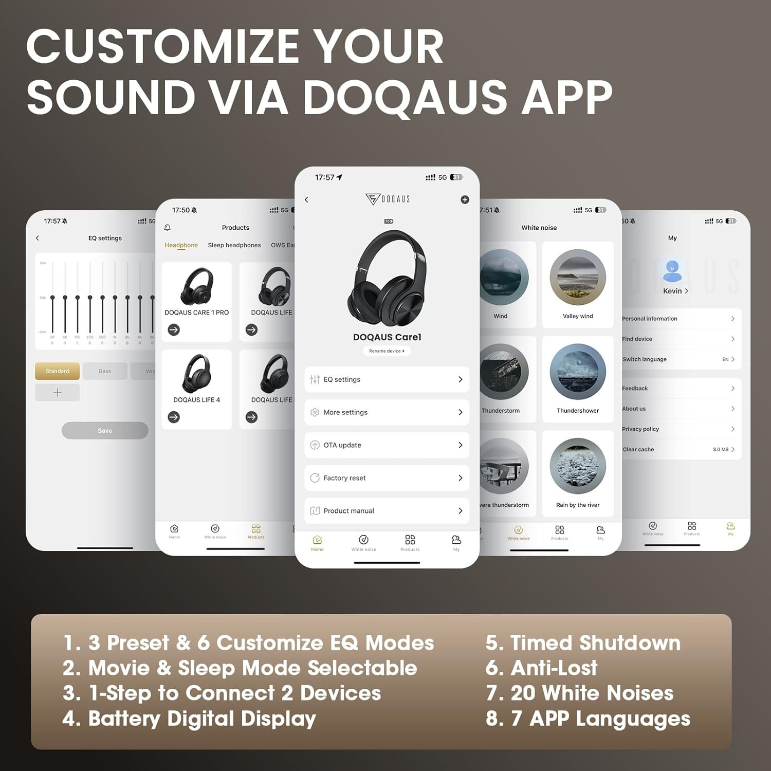 Bluetooth Headphones over Ear, 90H Playtime Wireless Headphones with App Control