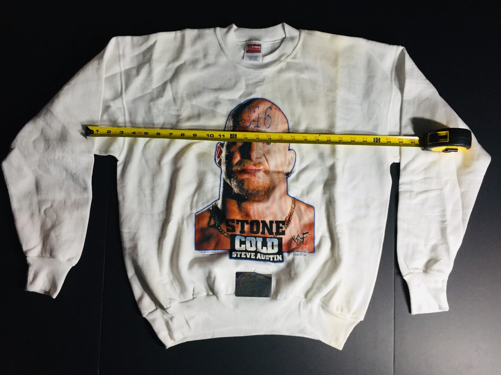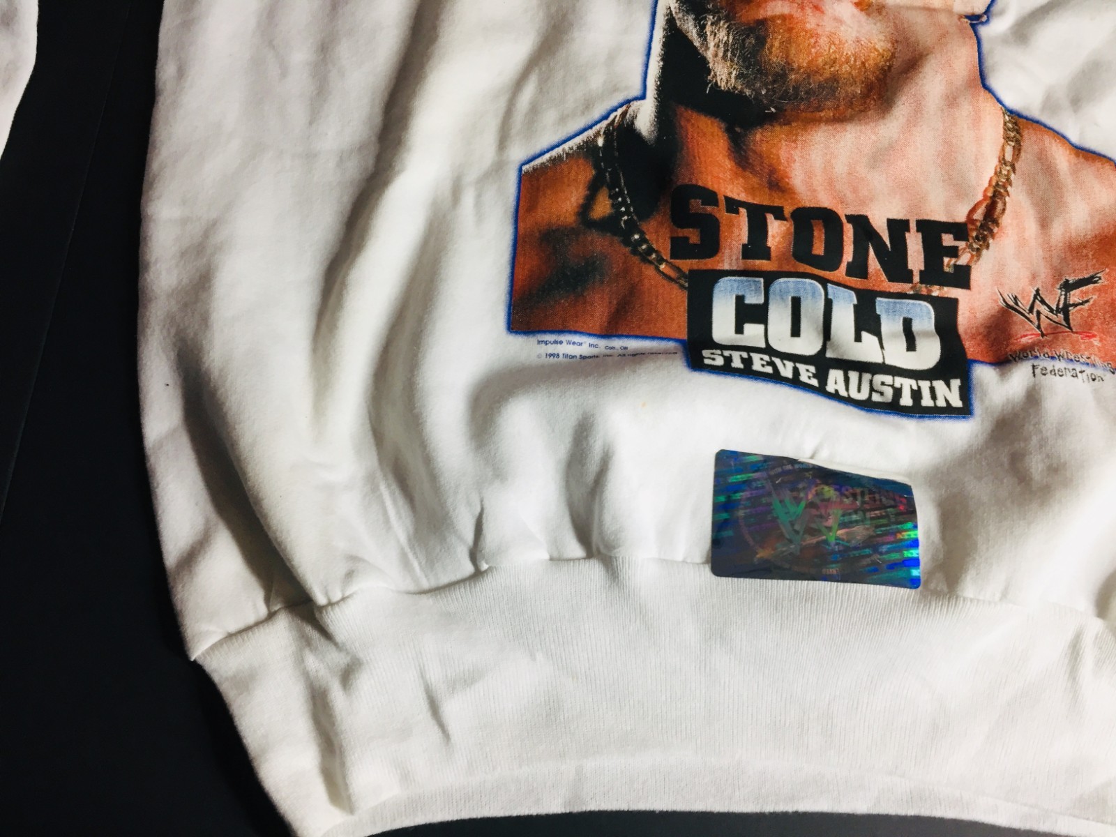 как выглядит VINTAGE "STONE COLD" STEVE AUSTIN WWF 1998 SWEATSHIRT L STAINED NEW w/HOLO фото