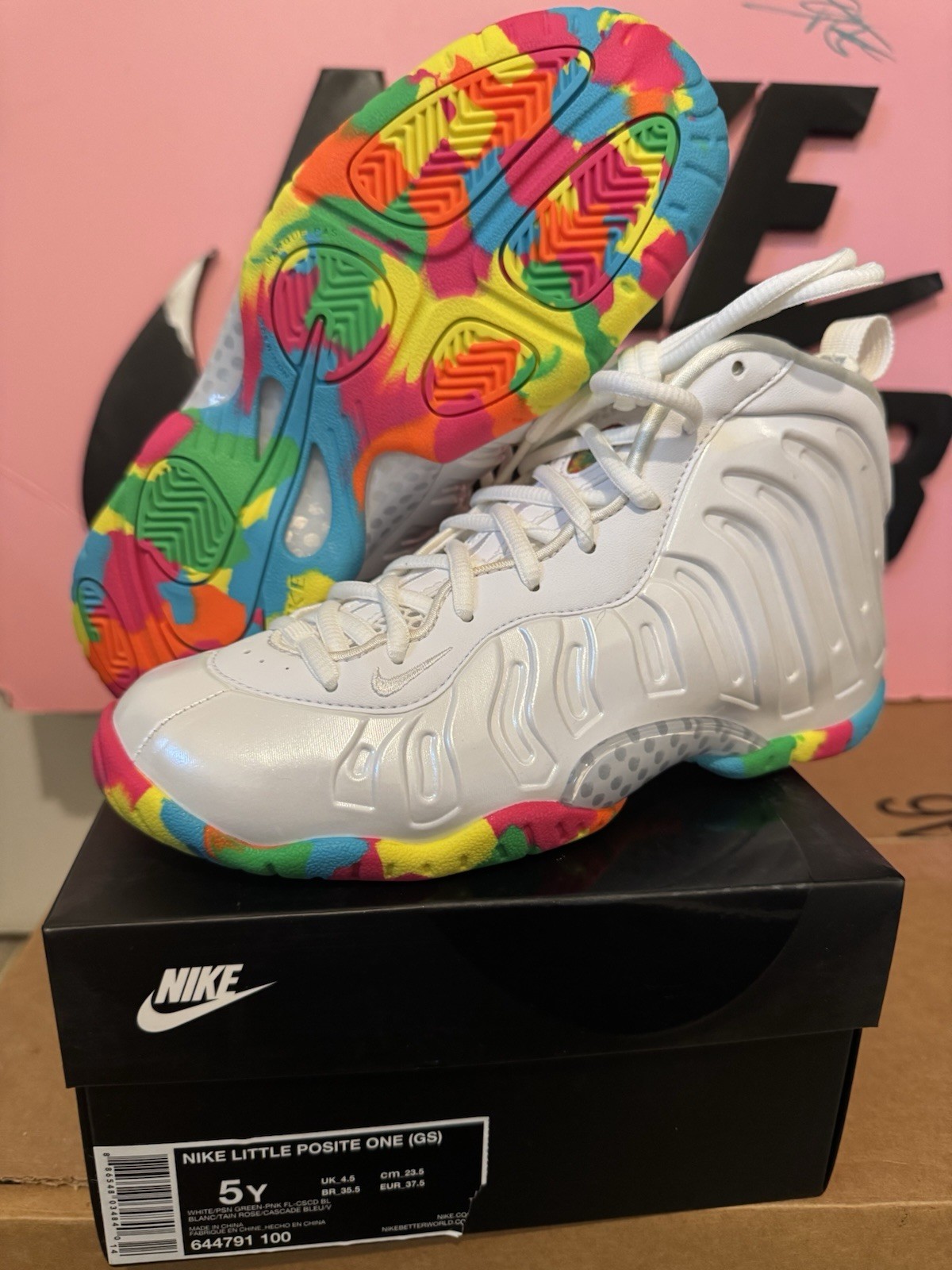 Nike Air Foamposite one White Fruity Pebles 5y 644791-100 White Pink Orange