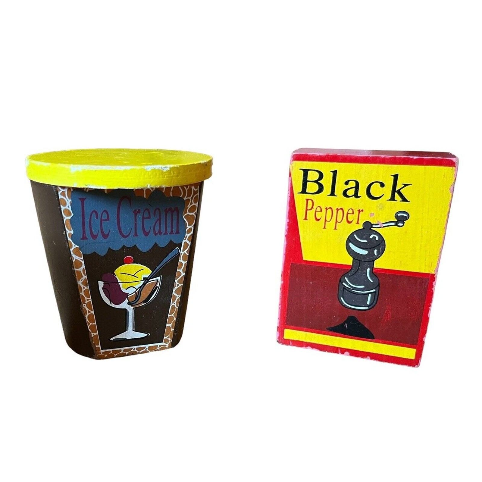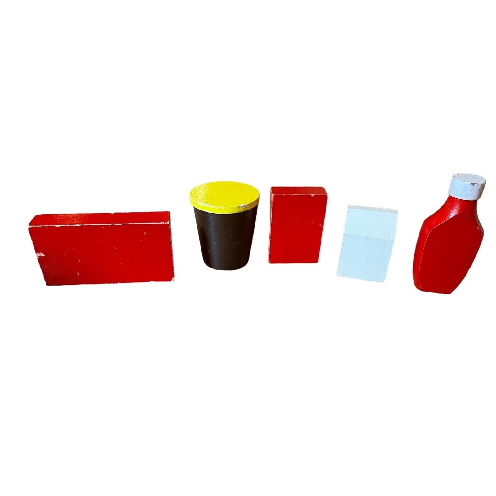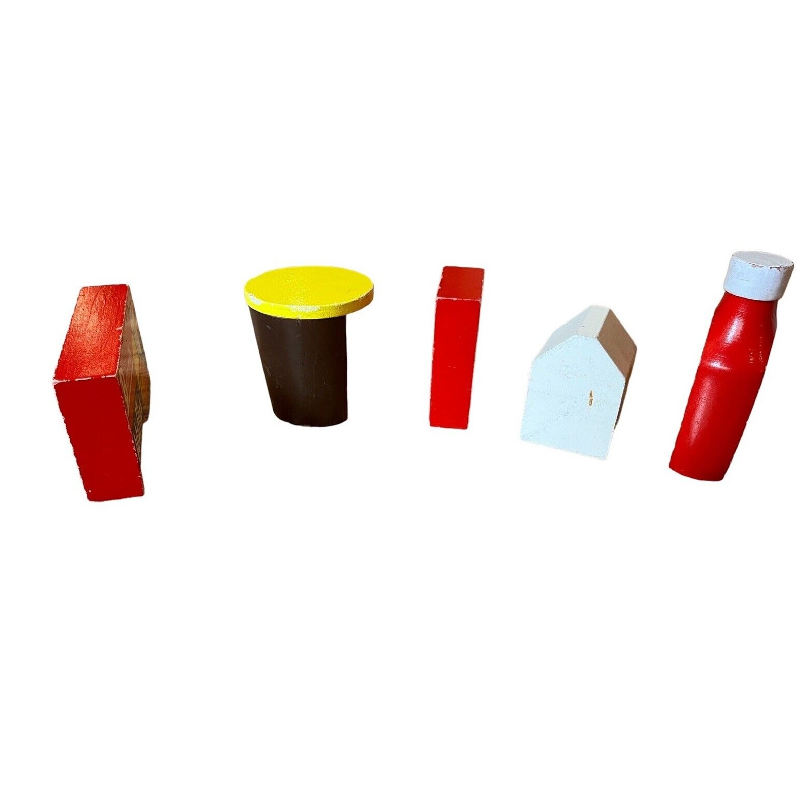 Wooden Block Pretend Play Food Grocery Store For Play Or Display 5 Piece Set