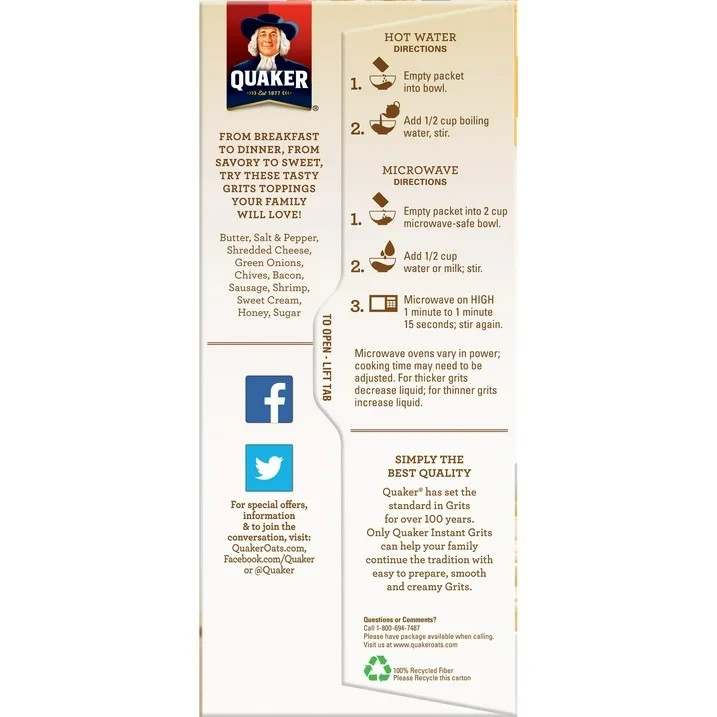 как выглядит Quaker Instant Grits Cheddar Cheese Naturally Flavored, 0.98 Oz 22 Count Box фото