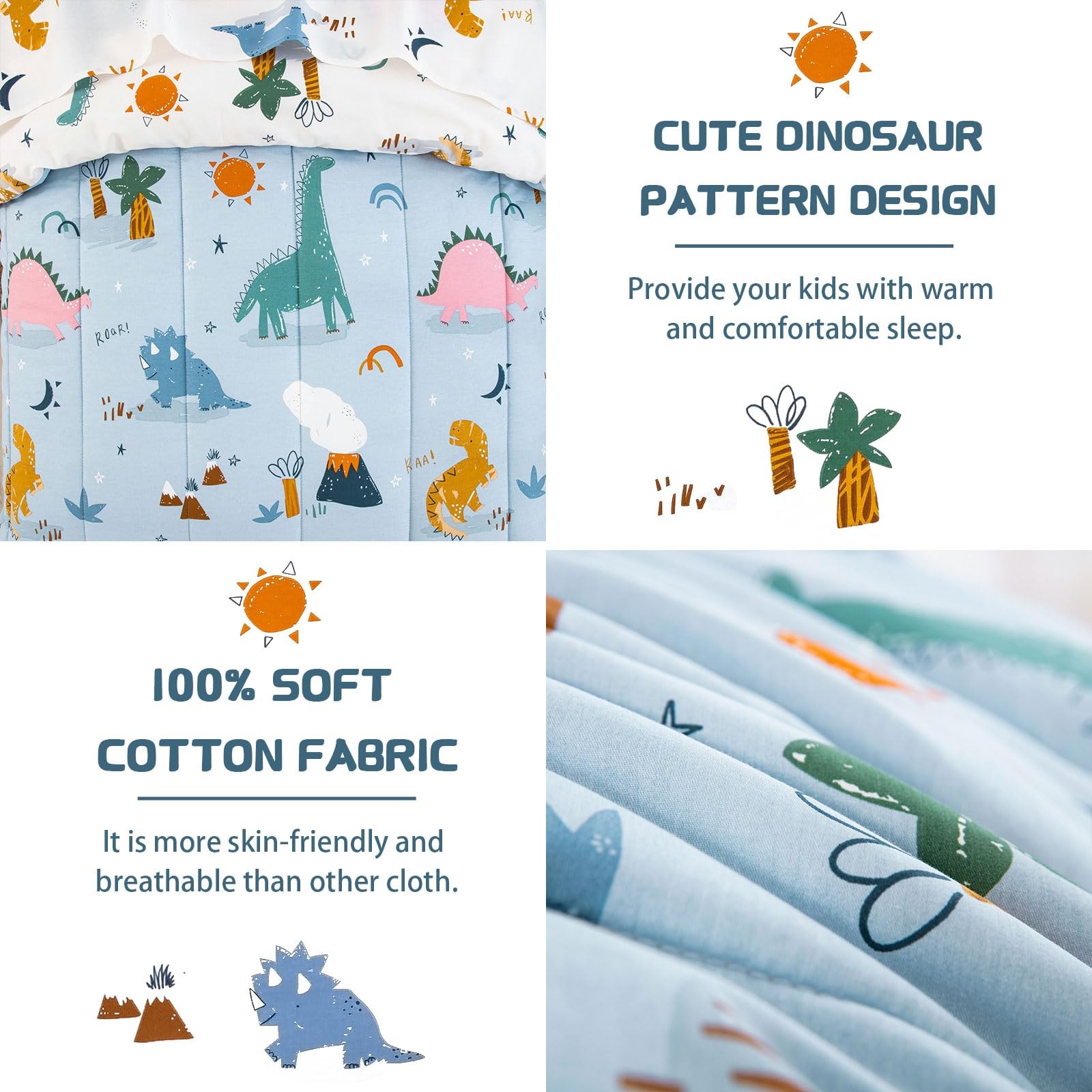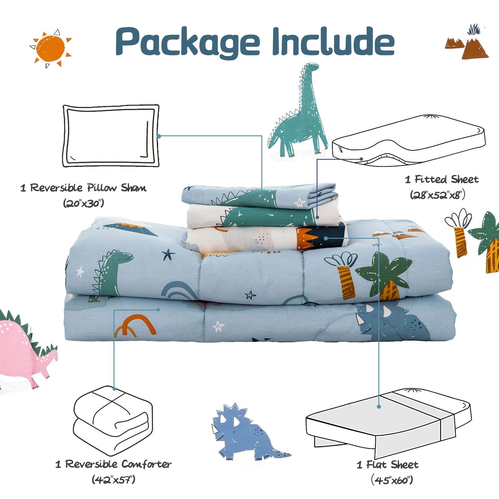 4 Pieces Cotton Toddler Bedding Set, Dinosaur Toddler Bed Comforter Set for B...