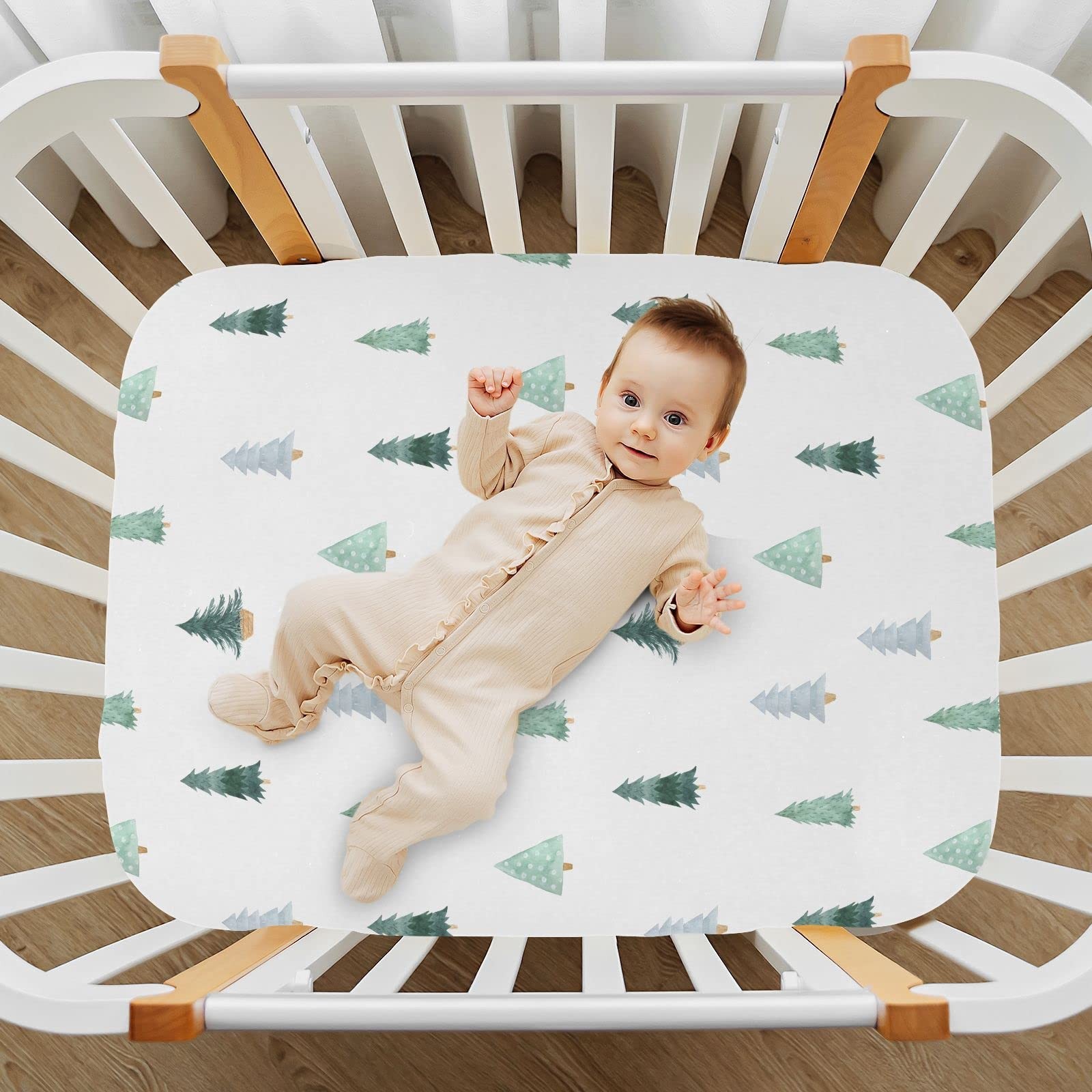 Christmas Tree Crib Sheet for Boys Girls, Fitted Crib Sheet 28 x 52 in for St...