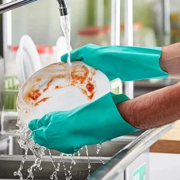 1 Pair Nitrile Dishwashing Gloves 13 Long Rubber Waterproof Flock Lined Large