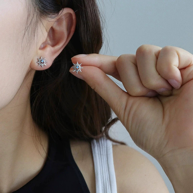 как выглядит Elegant Retro Openwork Sunflower Blue Zircon Fashion Mini Stud Earrings фото