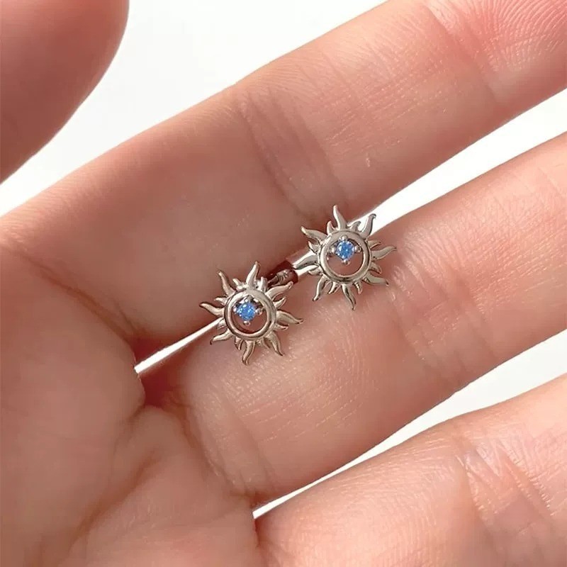 Elegant Retro Openwork Sunflower Blue Zircon Fashion Mini Stud Earrings
