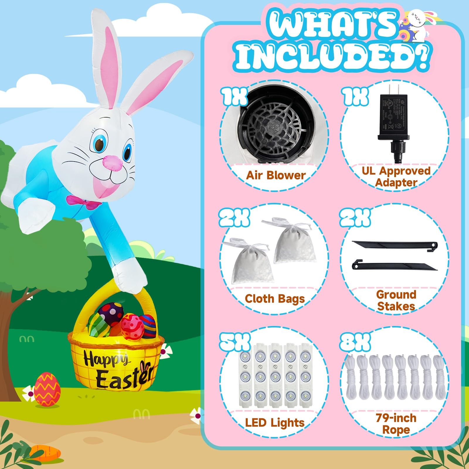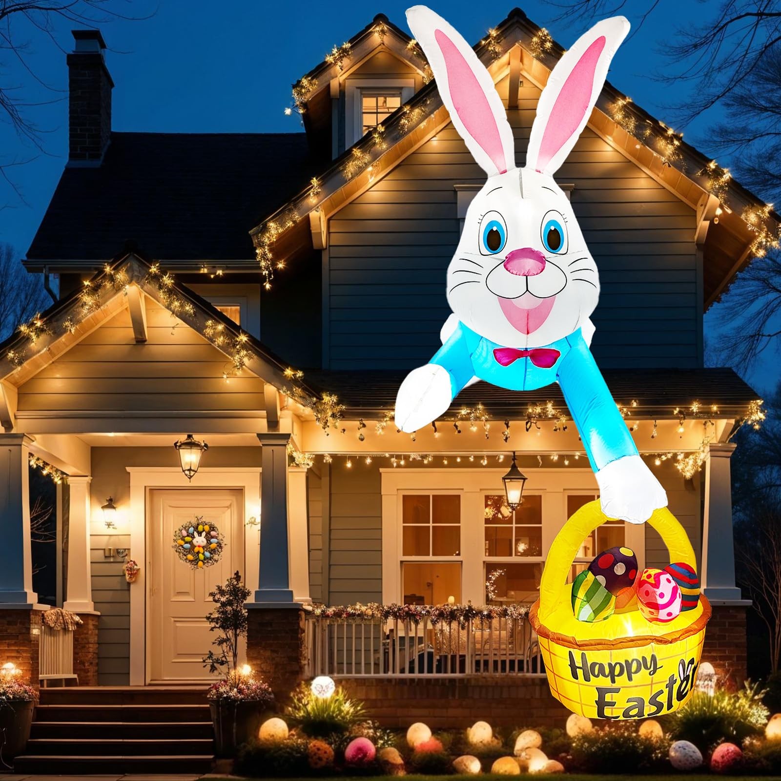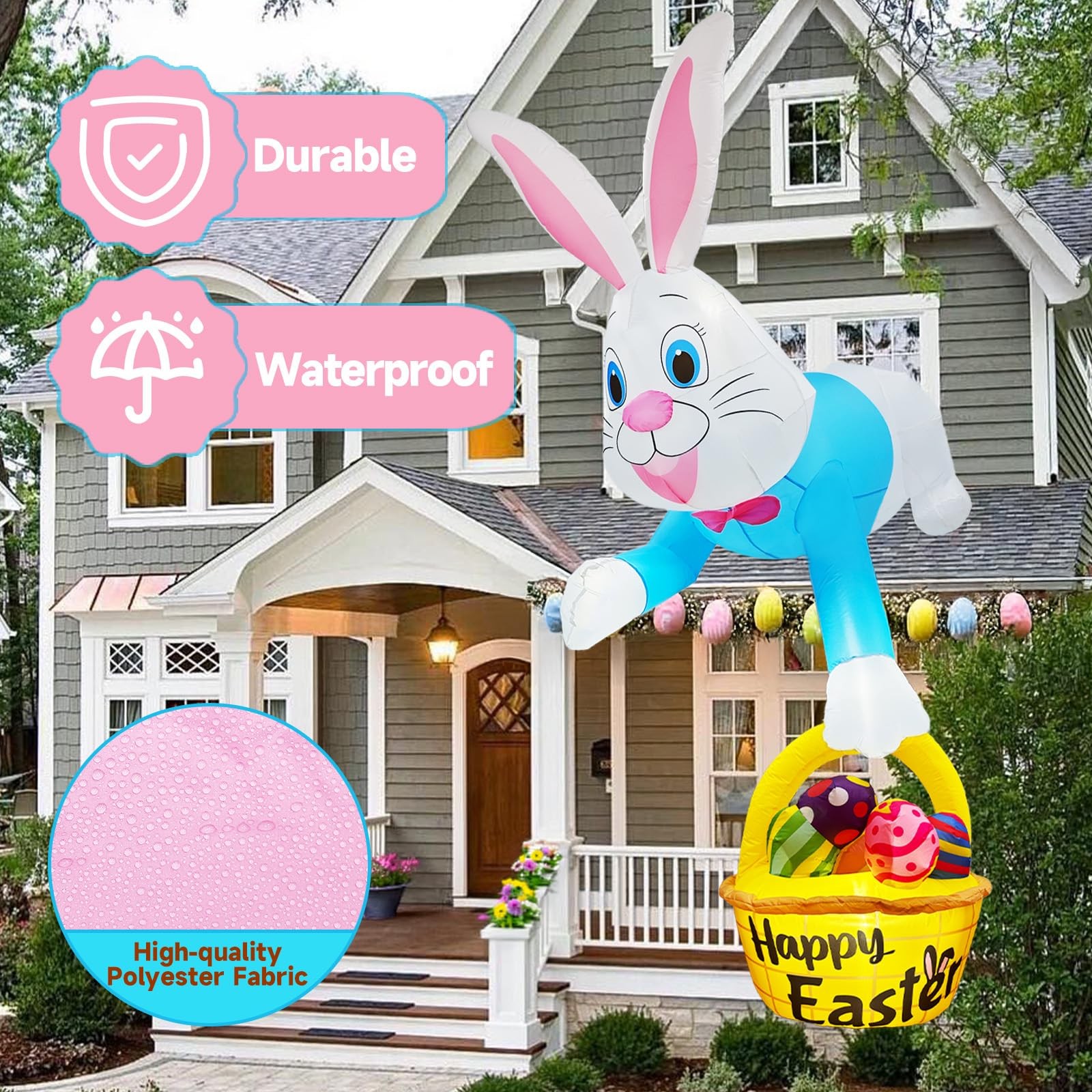 8FT Easter Inflatables Outdoor Decorations, Climbing Bunny with Eggs and Bask...