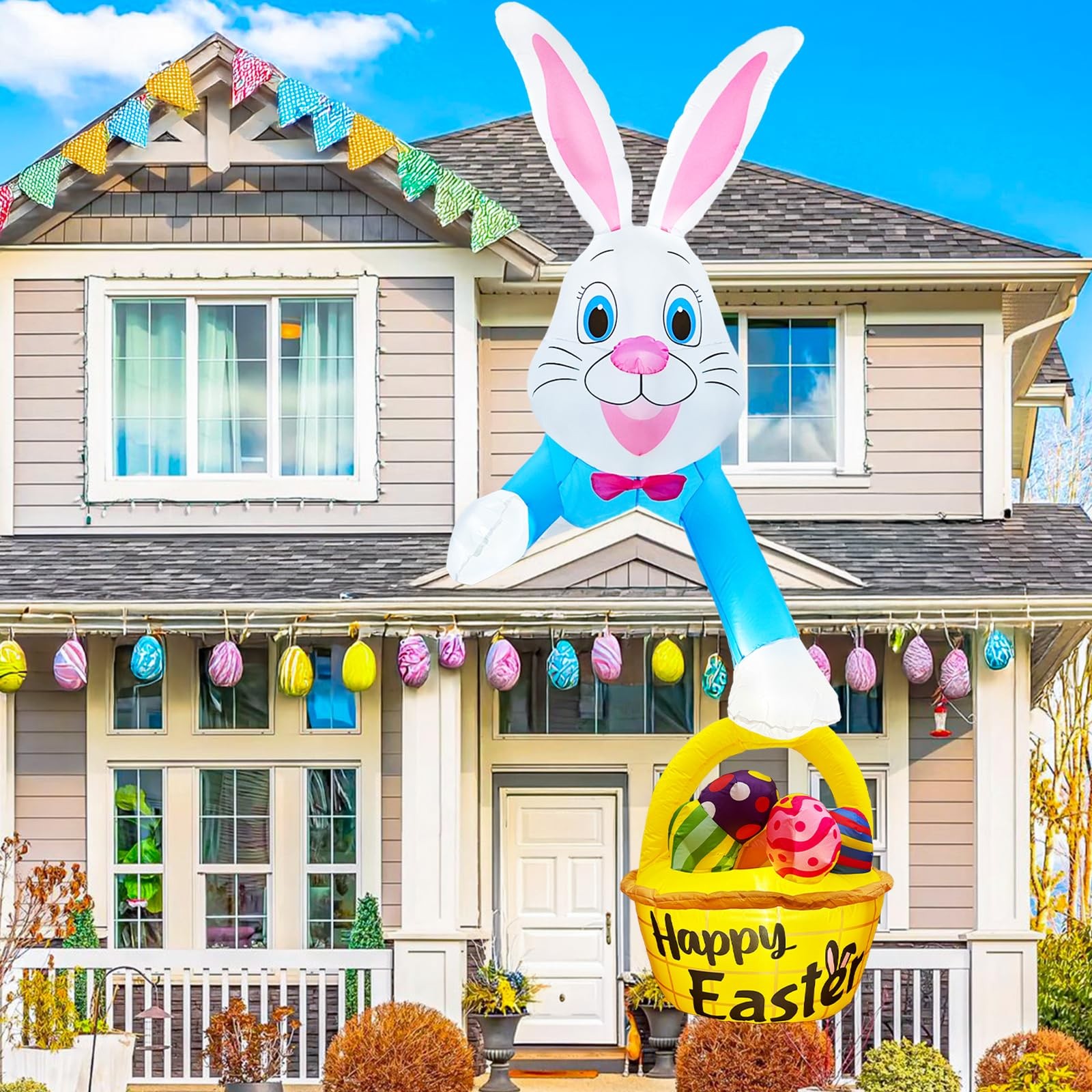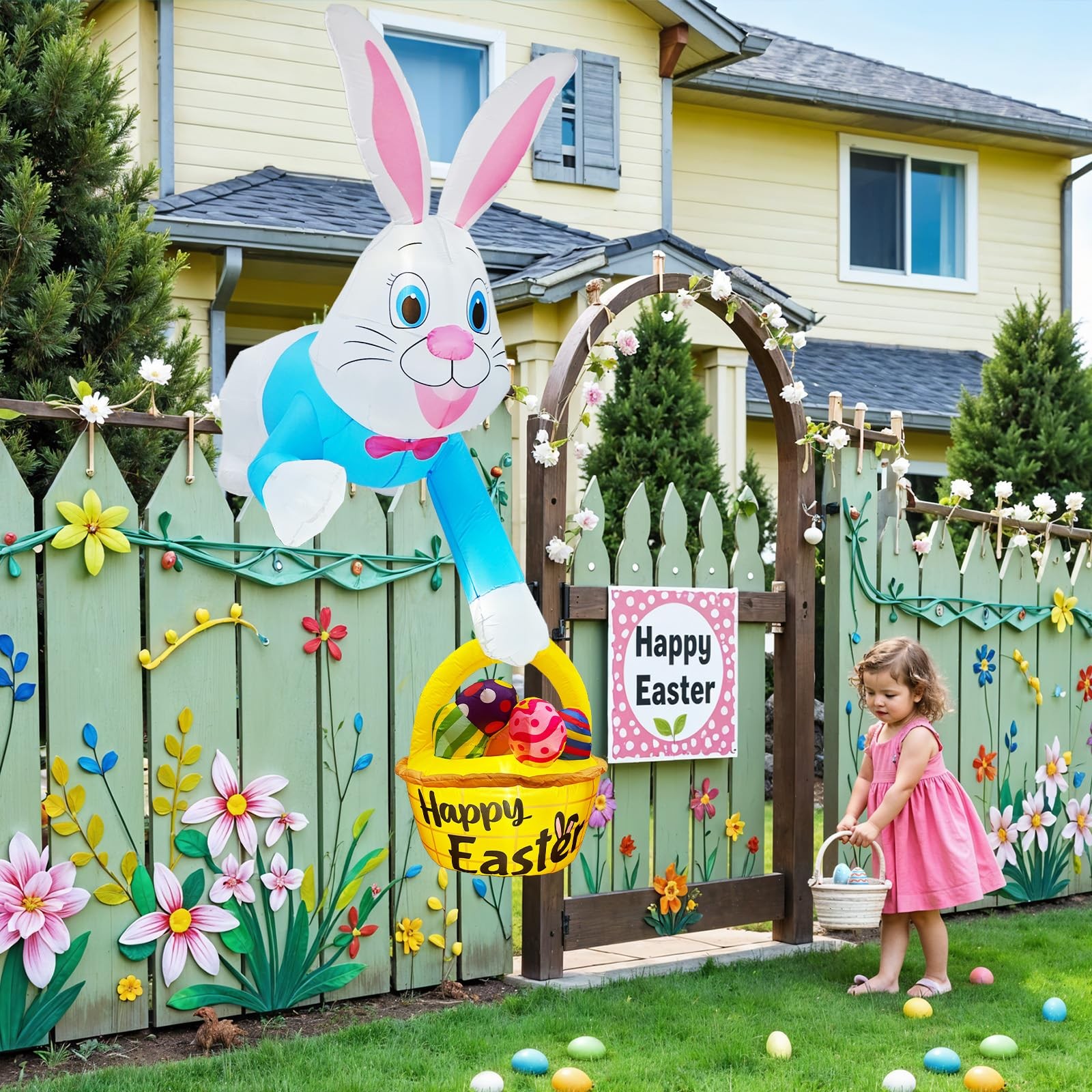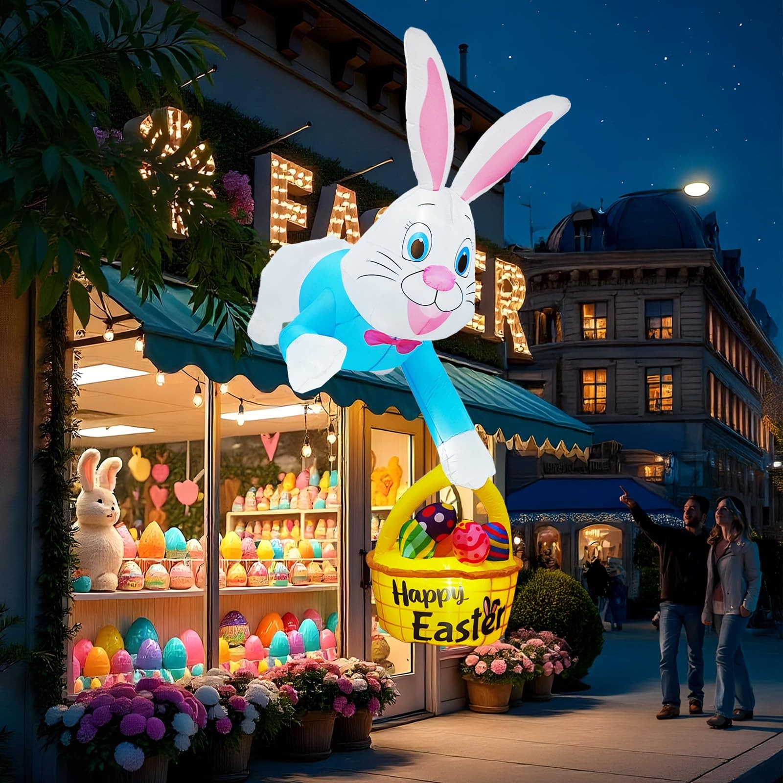 8FT Easter Inflatables Outdoor Decorations, Climbing Bunny with Eggs and Bask...