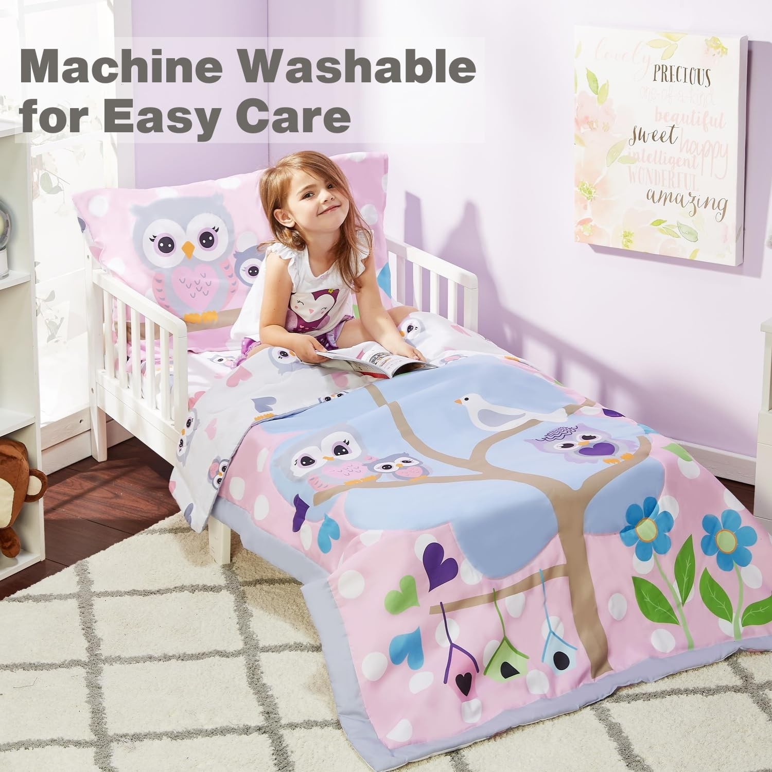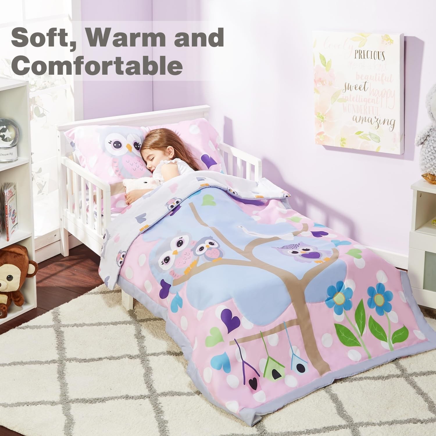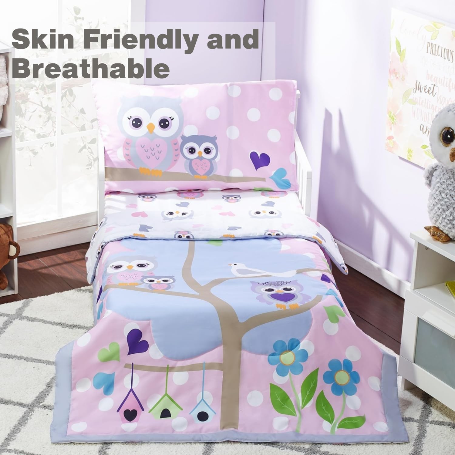4 Piece Toddler Bedding Set - Owls - Soft 100 Cotton Percale - Includes Comf...