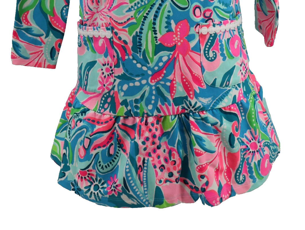 Lilly Pulitzer Vera Oasis Ruffle Dress Girls Size 8 10 Blue Pink Long Sleeve New