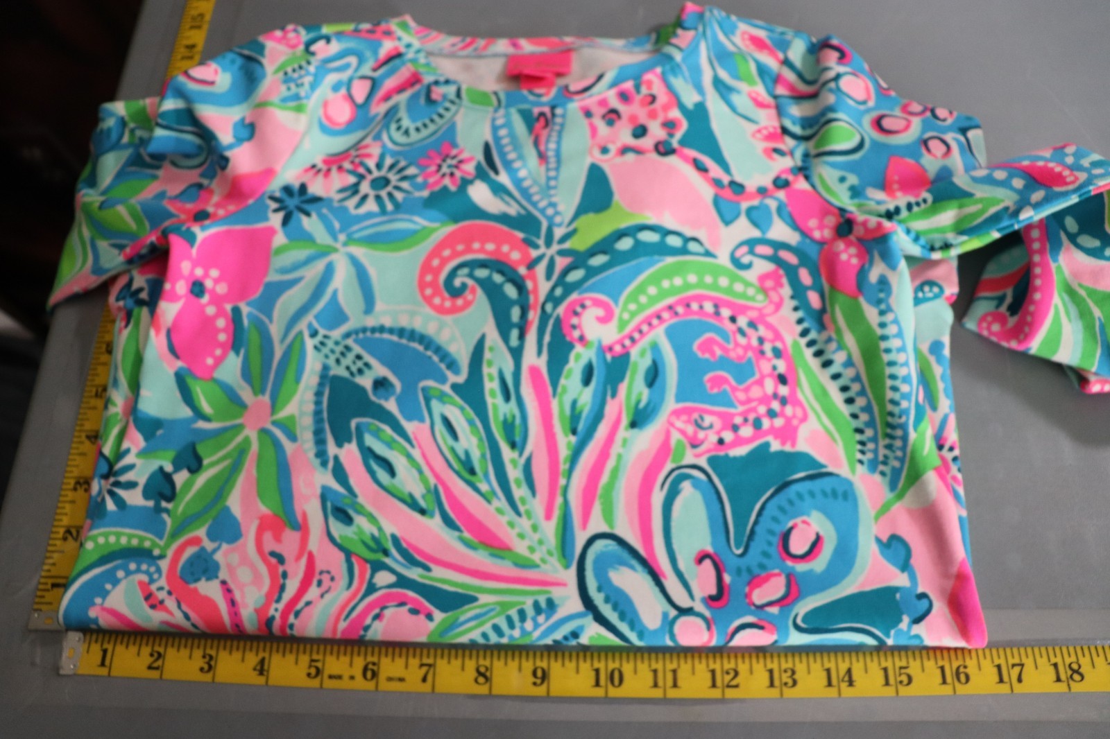 как выглядит Lilly Pulitzer Vera Oasis Ruffle Dress Girls Size 8 10 Blue Pink Long Sleeve New фото
