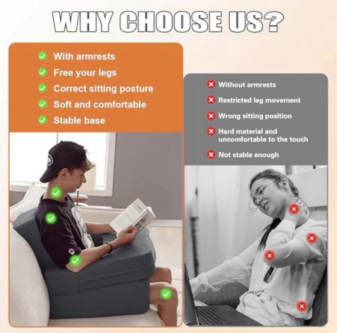 Особенности: Adjustable Stand, Cup Holder, Side Pocket, Removable Cover, Ergonomic Design, Comfortable Support, Leg Room, High-Density Memory Foam