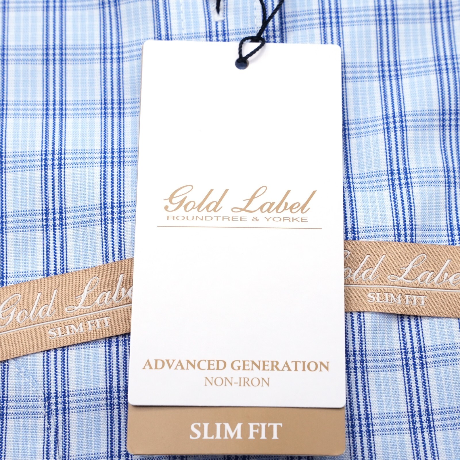 как выглядит Roundtree Yorke Gold Label Dress Shirt 14.5-32 SLIM FIT Blue Non-Iron NWT фото