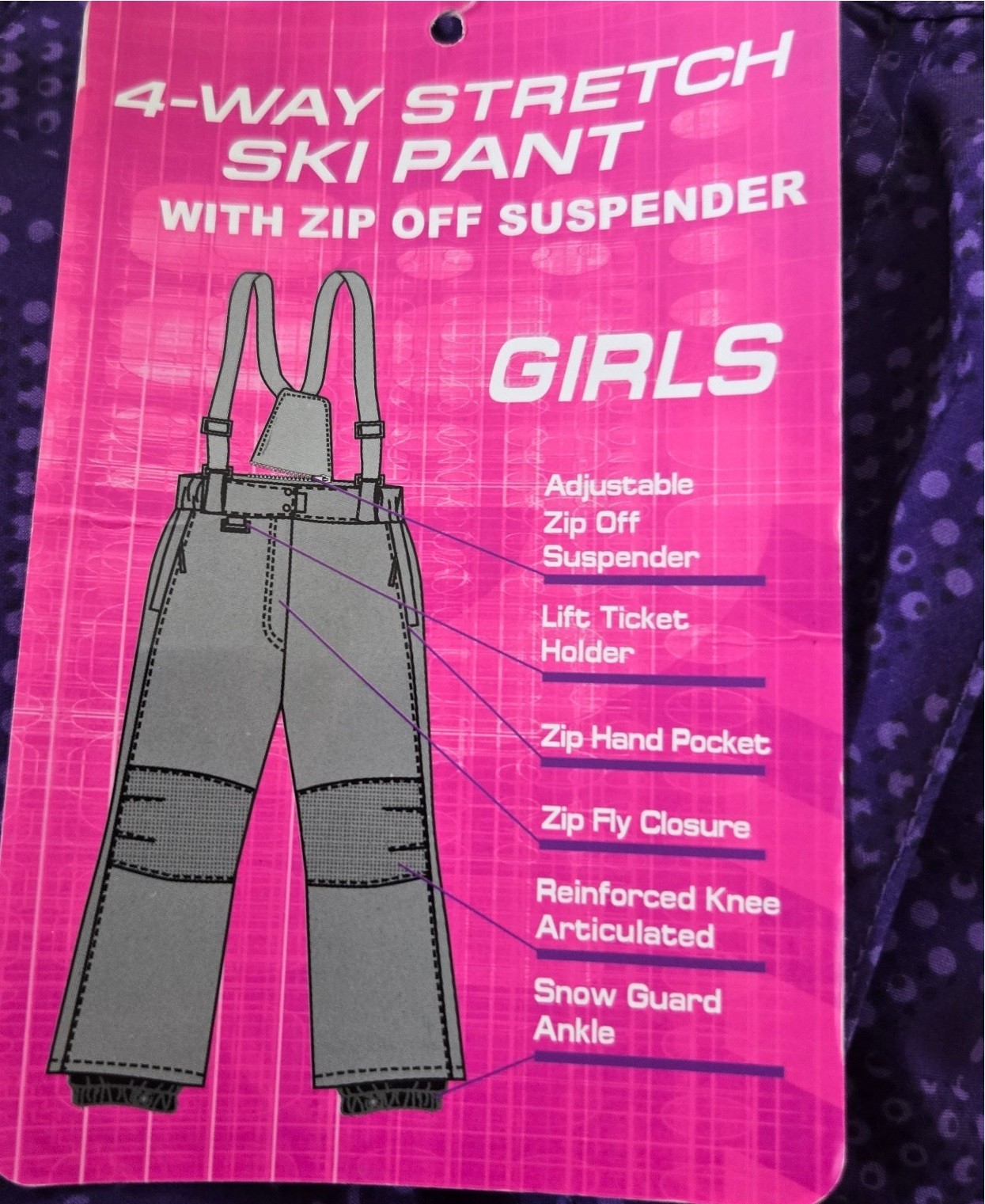 Weatherproof 32 Degrees Snow/Ski Pants Girls L14/16 NEW Purple Zip-off Suspender