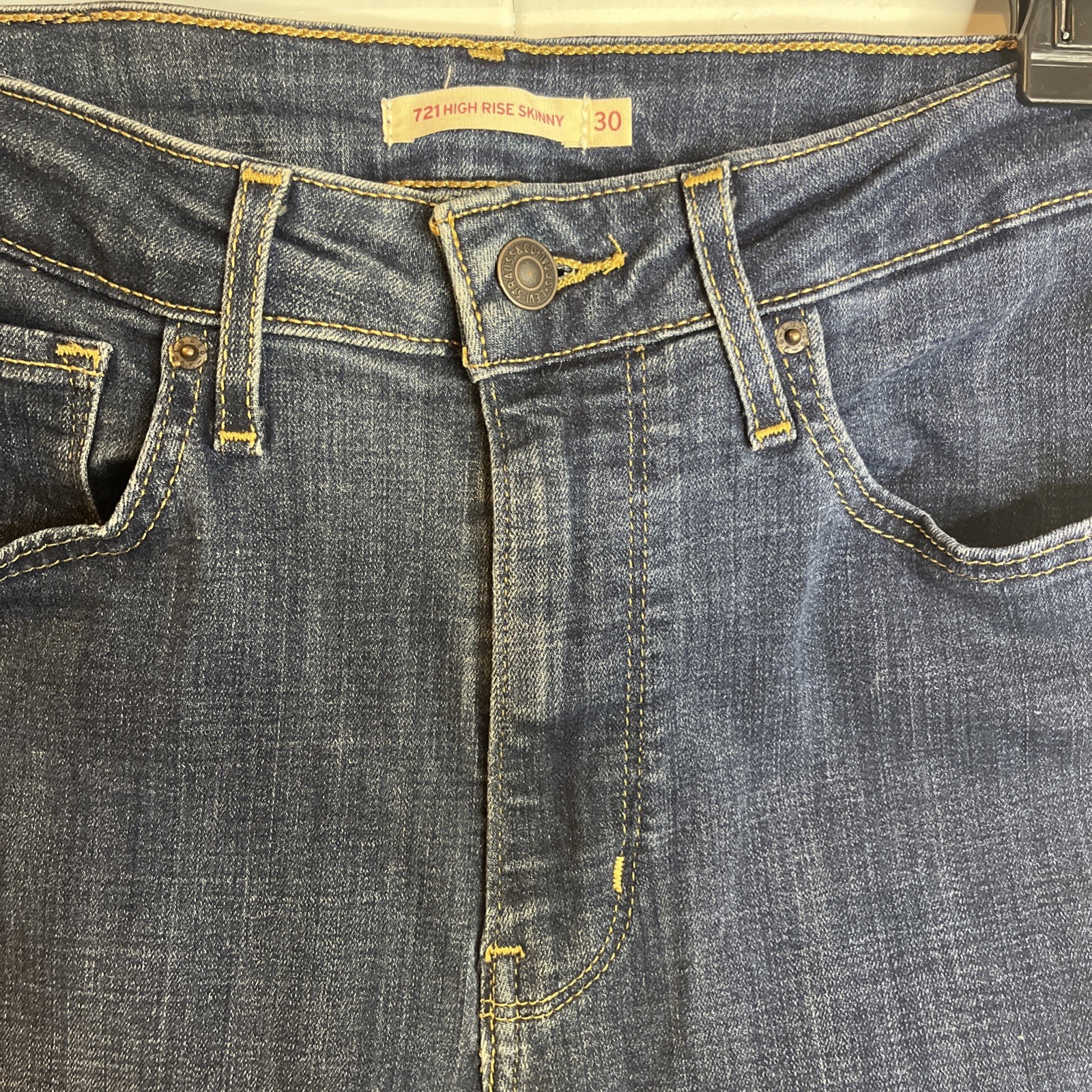 как выглядит Levis Womens 721 High Rise Skinny Jeans Medium to Dark Wash Blue Denim Sz 30 фото