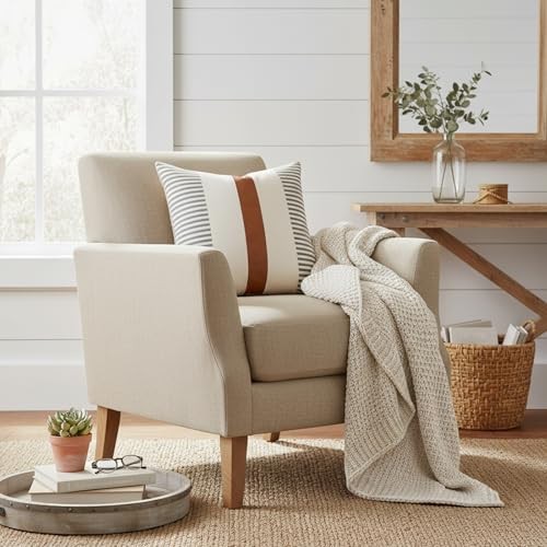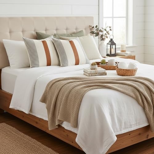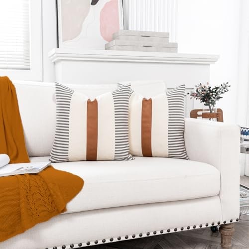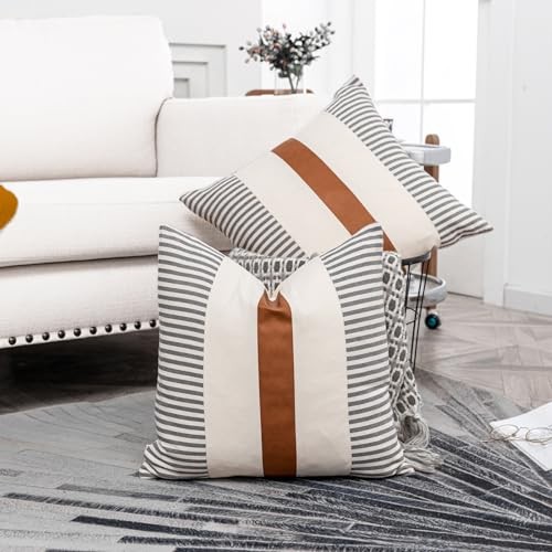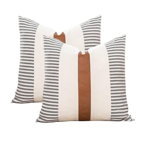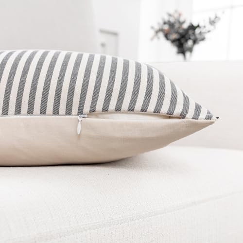 Farmhouse Stripe Throw Pillow Covers 20x20 20 x 20 Pack of 2 Grey Stripe