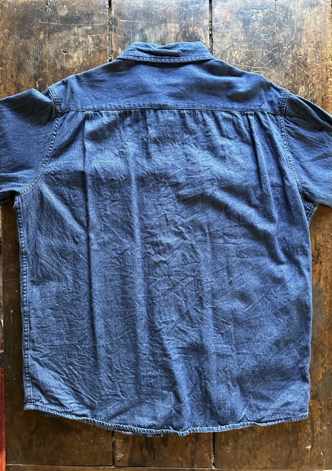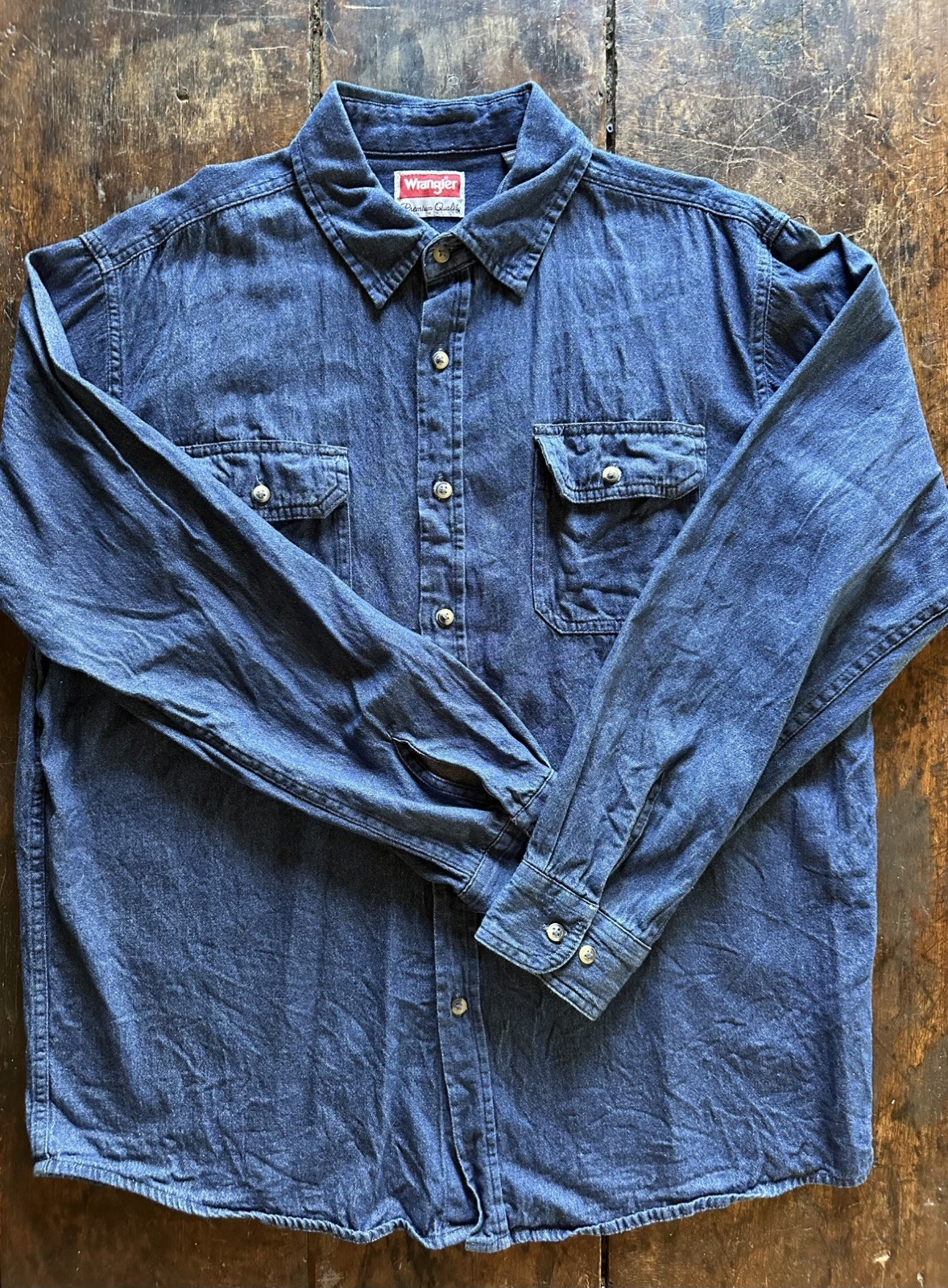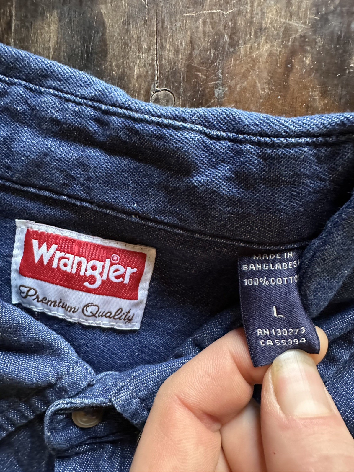 Wrangler Premium Denim Long Sleeve Button Down Western Shirt Blue Jean Men Large