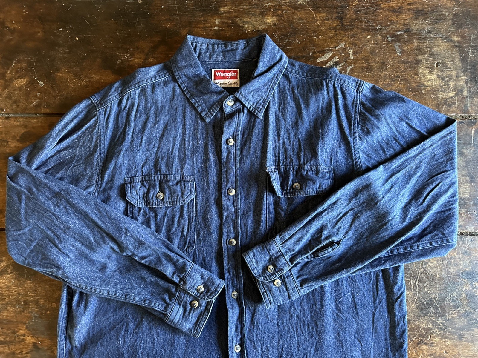 как выглядит Wrangler Premium Denim Long Sleeve Button Down Western Shirt Blue Jean Men Large фото