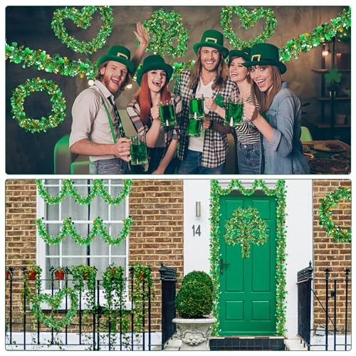 St Patricks Day Garland Decor Gold Green Shamrock Hat Tinsel Garland, 33 FT