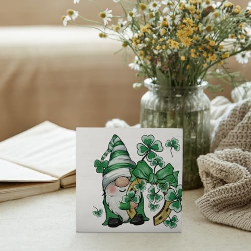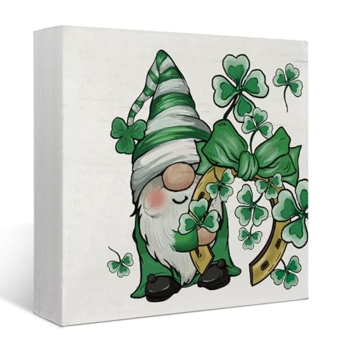 St Patricks Day Gnome Shamrocks Farmhouse Wood Box Sign,Irish Green Gnome