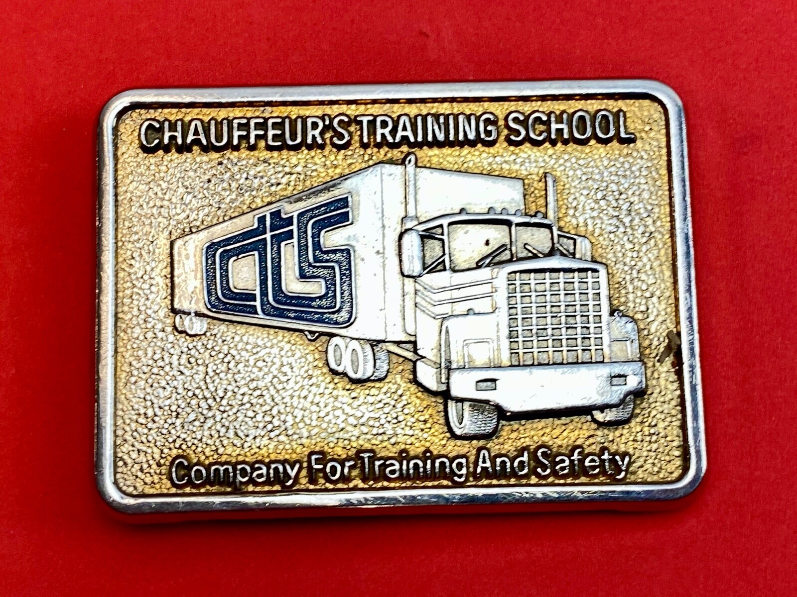 Vtg. Chauffeur s Semi Truck Driver Big Rig Safety Training School belt buckle