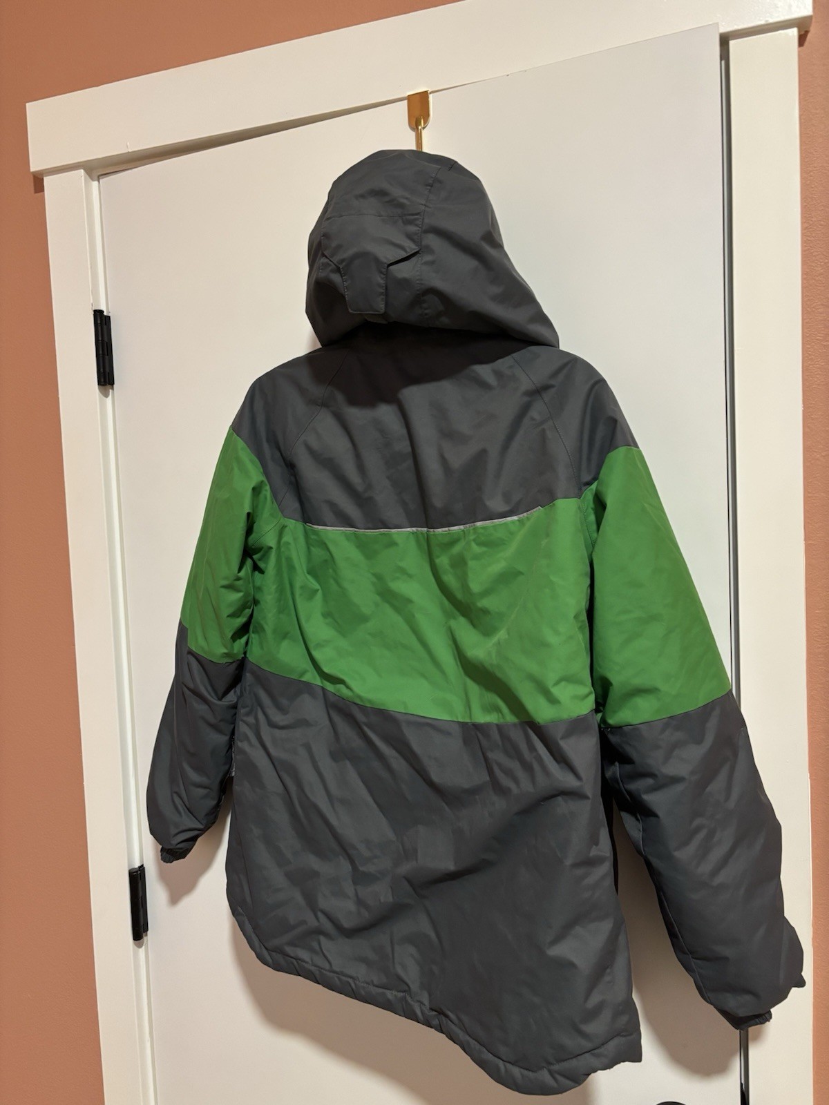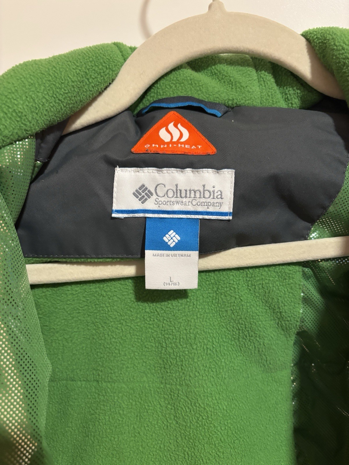Columbia Omni-Heat Unisex Kids Ski Jacket Green Gray Hooded L 14/16 Colorblock
