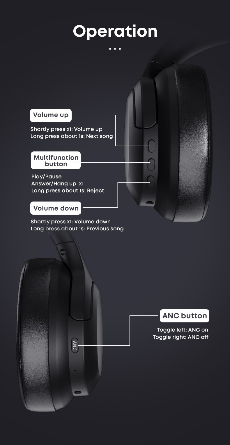 Особенности: Active Noise Cancellation, Wireless, Adjustable Headband, Built-in Microphone
