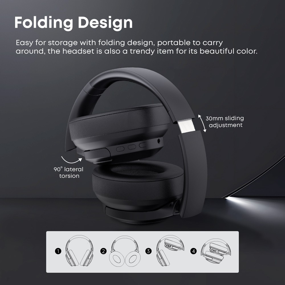Wireless Wired Over-Ear Headphones - Black, Noise Cancelling Bluetooth 5.4 Mic