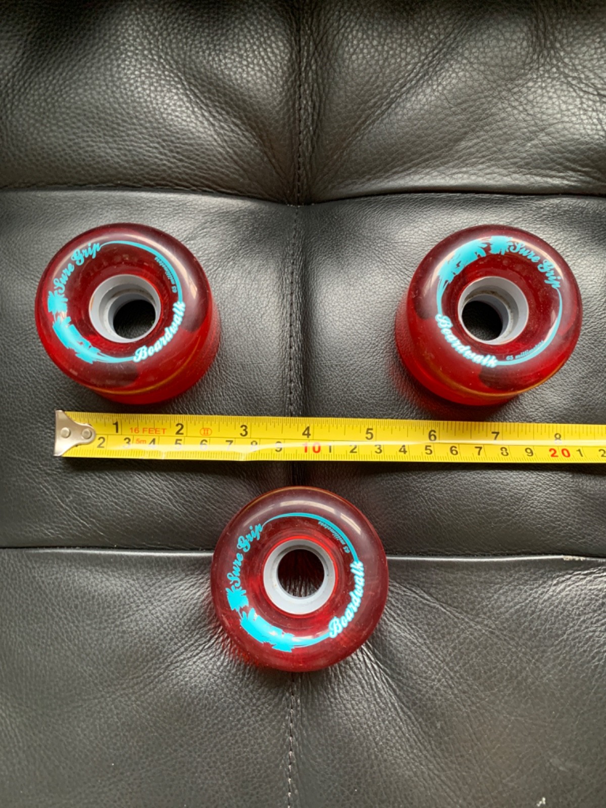 3 Sure Grip Boardwalk Roller Skating Wheels Replacement 65mm Clear Cherry Red