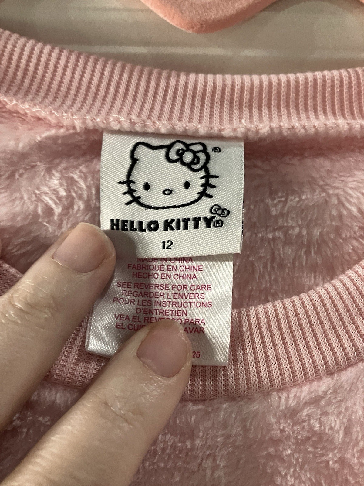 как выглядит Sanrio Hello Kitty Faux Fur Pink Sweatshirt Girl s Size 12 NWT фото