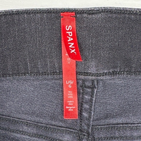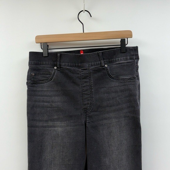 как выглядит Spanx Tall High Rise Straight Leg Pull-On Jeans Vintage Black Denim Large Long фото